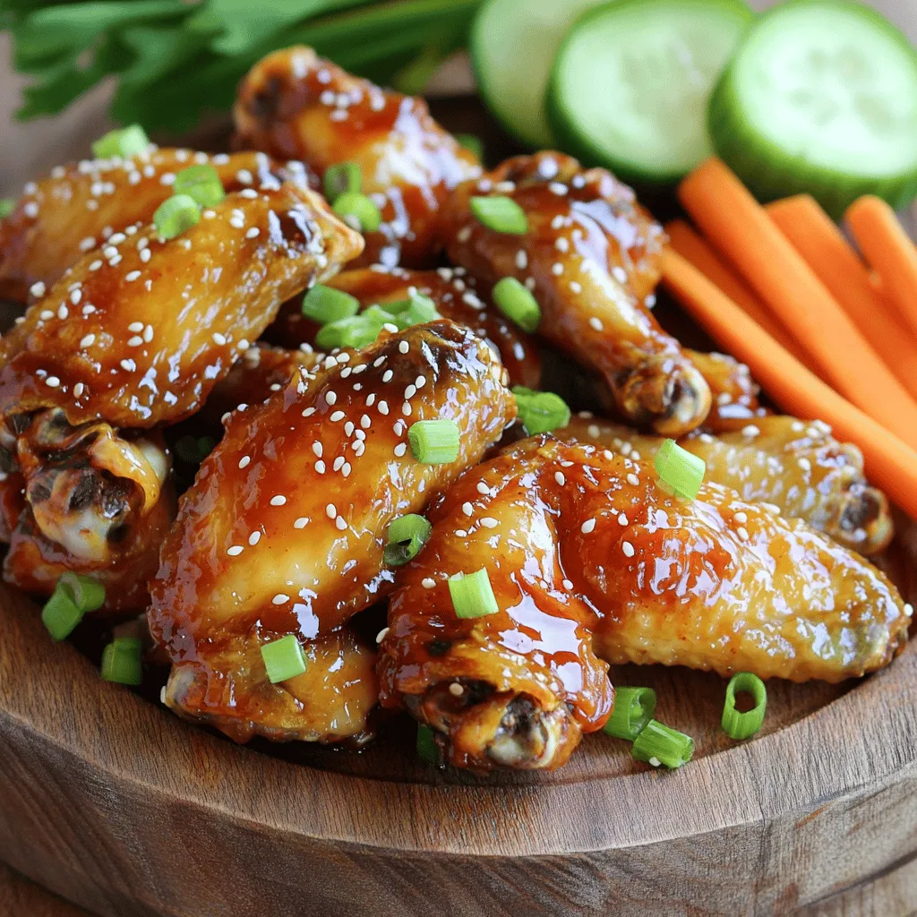For a fun touch, sprinkle sesame seeds and chopped green onions on top. This not only looks good but also adds a bit of flavor. Enjoy these wings with friends or family for a great meal!