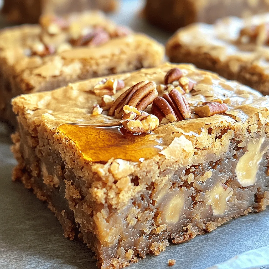 For a special touch, drizzle extra maple syrup on top before serving. This adds a nice shine and sweetness. You can also garnish with chopped pecans. This not only looks pretty but also gives a crunchy bite. Cut the blondies into squares for easy serving. Enjoy them warm for the best flavor!