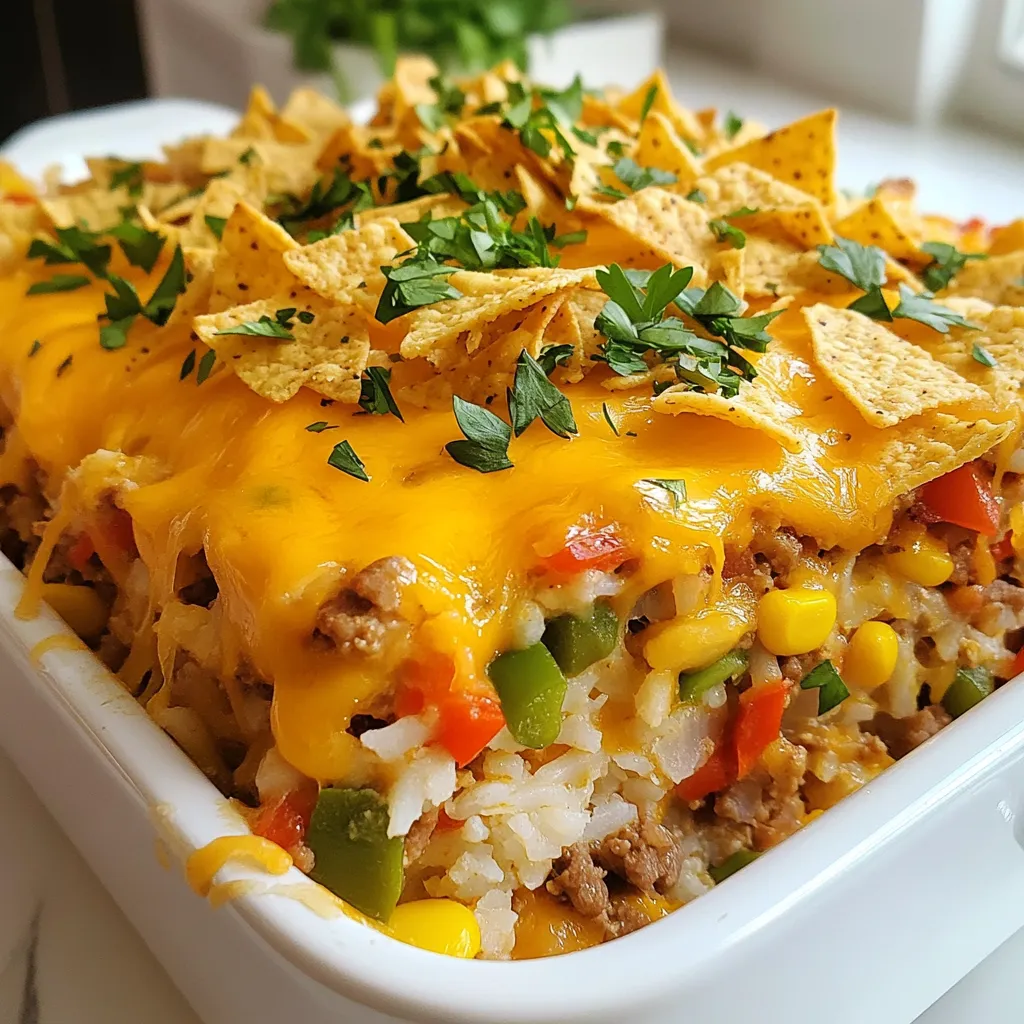 The garlic and onion powders offer a burst of flavor, while salt and pepper enhance everything. Finally, crushed tortilla chips on top give a nice crunch.