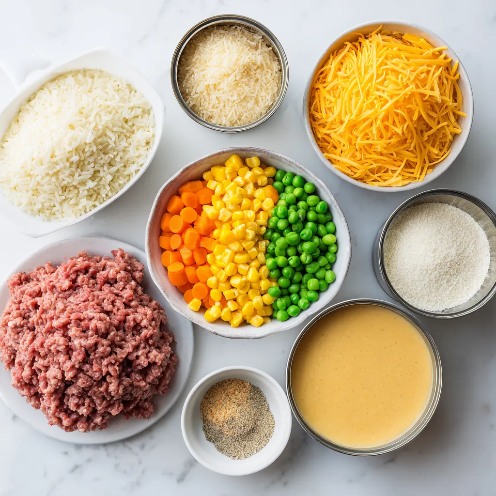 Each ingredient plays a key role in making this dish tasty and filling. The ground beef or turkey gives the casserole its hearty base. The mixed vegetables add color and nutrients.