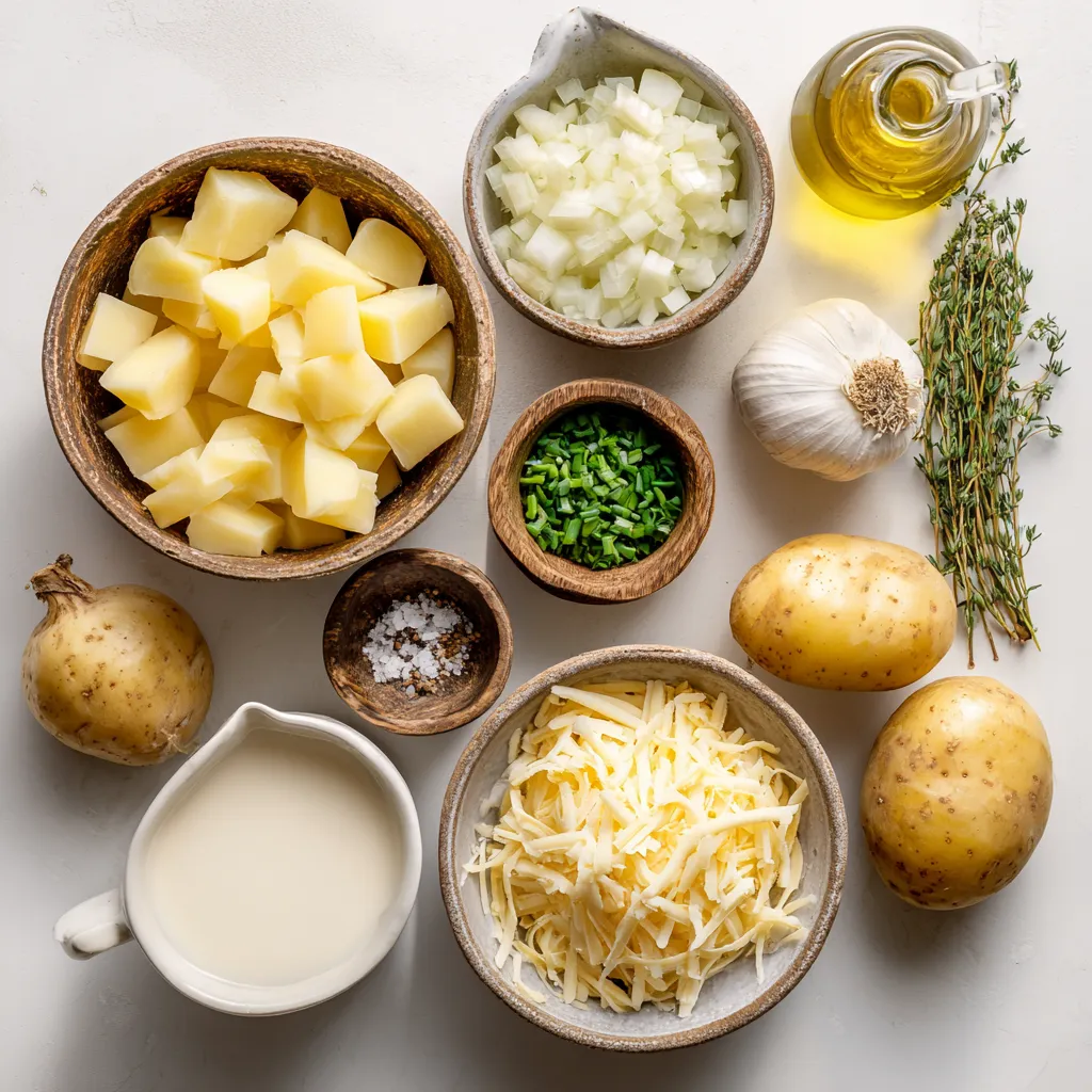 These ingredients create a rich and creamy soup. Yukon Gold potatoes are great for texture and flavor. The onion and garlic add depth. The vegetable broth forms a tasty base. Heavy cream makes it smooth, while sharp cheddar brings a delicious kick.