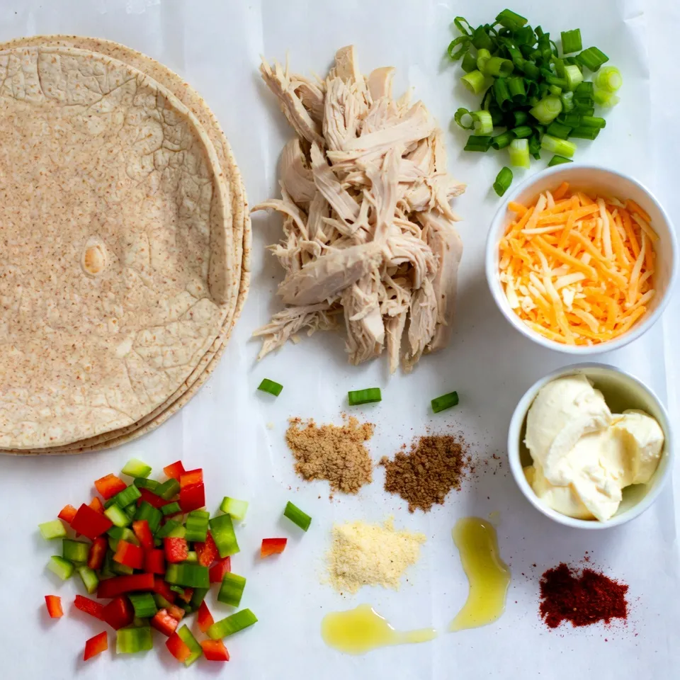 These main ingredients create a creamy and cheesy mix. The chicken gives it protein, while the cream cheese and cheddar add rich flavor. Whole wheat tortillas provide a healthy wrap.