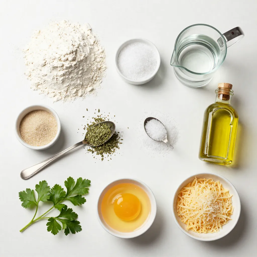 Garlic powder and dried oregano infuse savory notes. The star ingredients are mozzarella and parmesan cheese, which melt beautifully. The beaten egg gives a nice golden finish. Finally, fresh parsley adds a pop of color as a garnish.