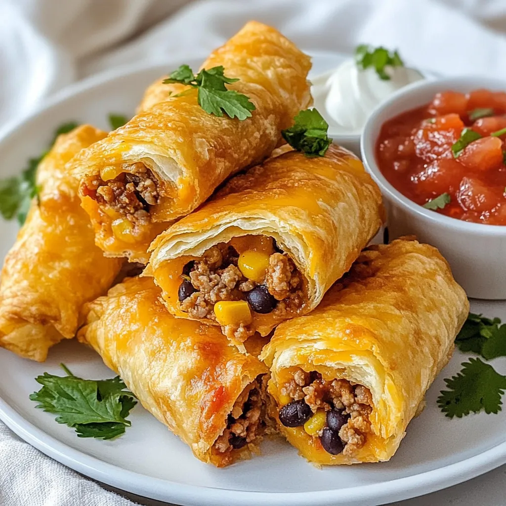 Delicious taco-inspired sticks filled with cheesy goodness, perfect for dipping.