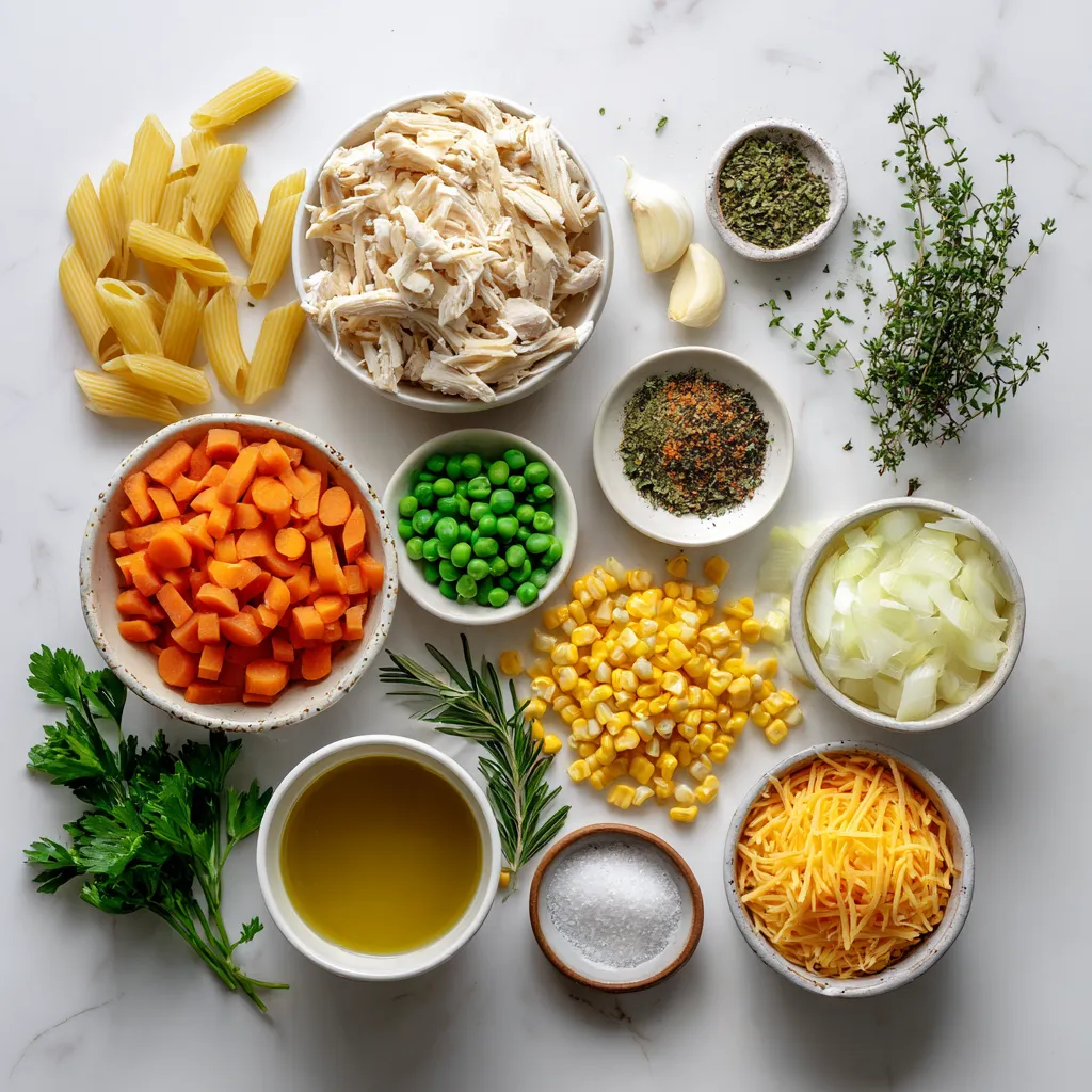 To make Chicken Pot Pie Pasta, you will need these simple ingredients: