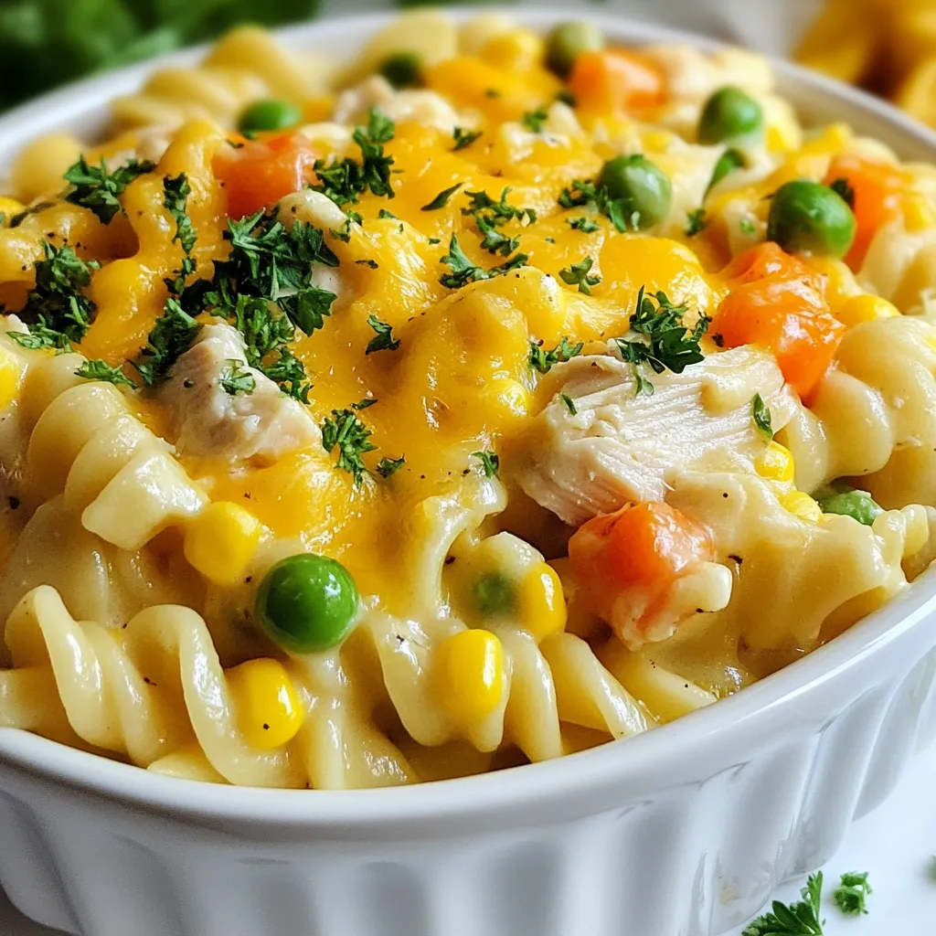 - Comfort Food: This dish combines all the flavors of traditional chicken pot pie into a creamy, comforting pasta dish that warms the soul.