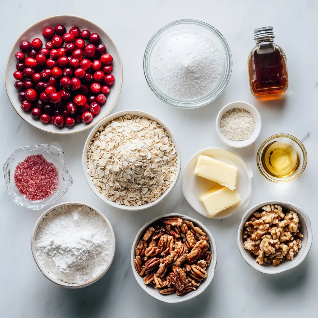 The ingredients for Cranberry Crumble Bars are simple and easy to find. Fresh or frozen cranberries give a tart flavor and bright color. Granulated sugar sweetens the filling and the topping. Cornstarch helps thicken the cranberry filling, making it perfect. Vanilla extract adds a warm note to the mix.