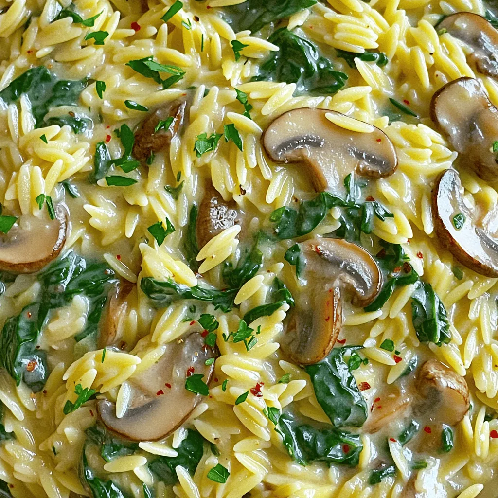 These ingredients make a rich and creamy base. The orzo absorbs the flavors well. The mushrooms add umami, while the spinach gives it a fresh touch.