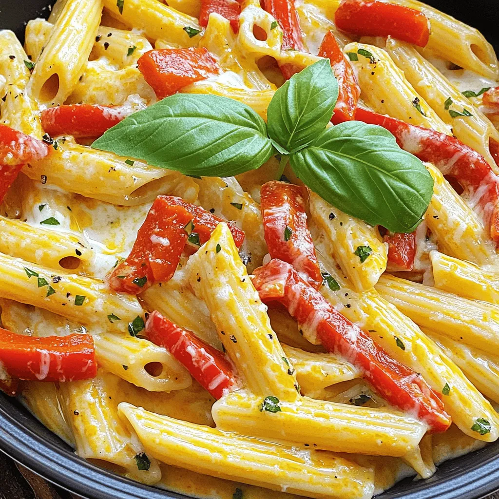 Each ingredient plays a big role in making this dish rich and tasty. The penne pasta serves as the base, holding the creamy sauce well. The roasted red bell peppers bring a sweet and smoky flavor that shines through. Heavy cream adds a smooth texture, while Parmesan cheese gives it a salty kick. Olive oil helps to blend the flavors, and garlic adds that aromatic touch. Italian seasoning brings warmth and depth. Finally, salt and pepper help balance all the tastes. Garnishing with fresh basil adds a pop of color and freshness. This combination makes the dish both comforting and vibrant.
