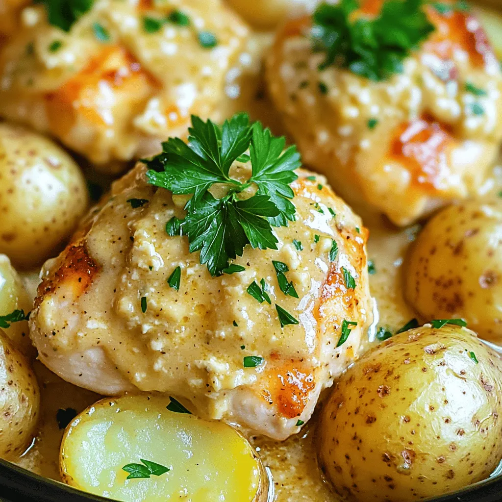 To get a rich and creamy sauce, start with the right balance. Use heavy cream and Parmesan cheese. They blend well for a smooth texture. When you mix these, stir until combined. Pour this over the chicken and potatoes. This ensures every bite is creamy and delicious.