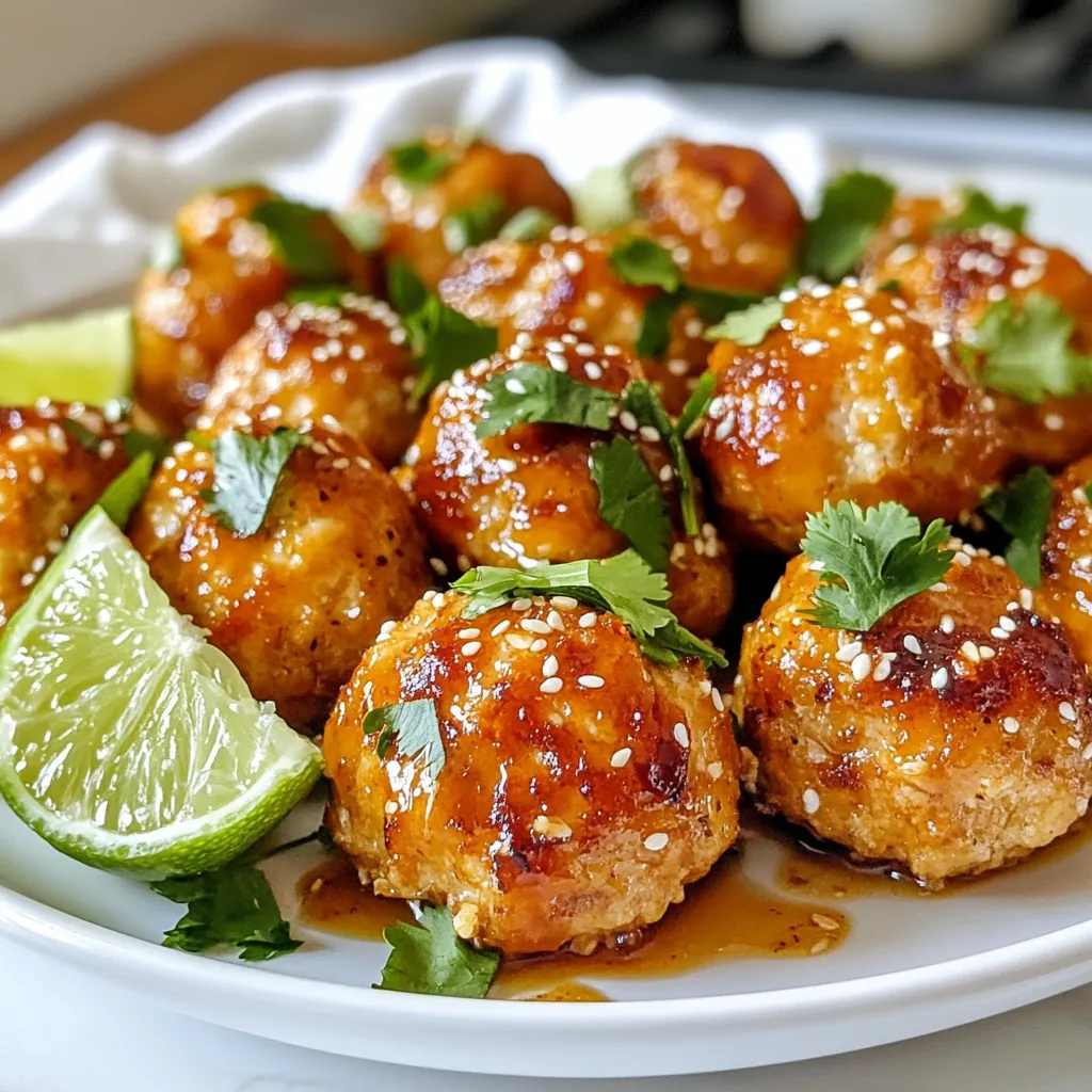 These meatballs shine with a side of sweet chili sauce. Serve them over jasmine rice for a complete meal. You can also garnish with fresh cilantro and lime wedges. This adds color and extra flavor. For a fun twist, serve them as sliders in small buns.