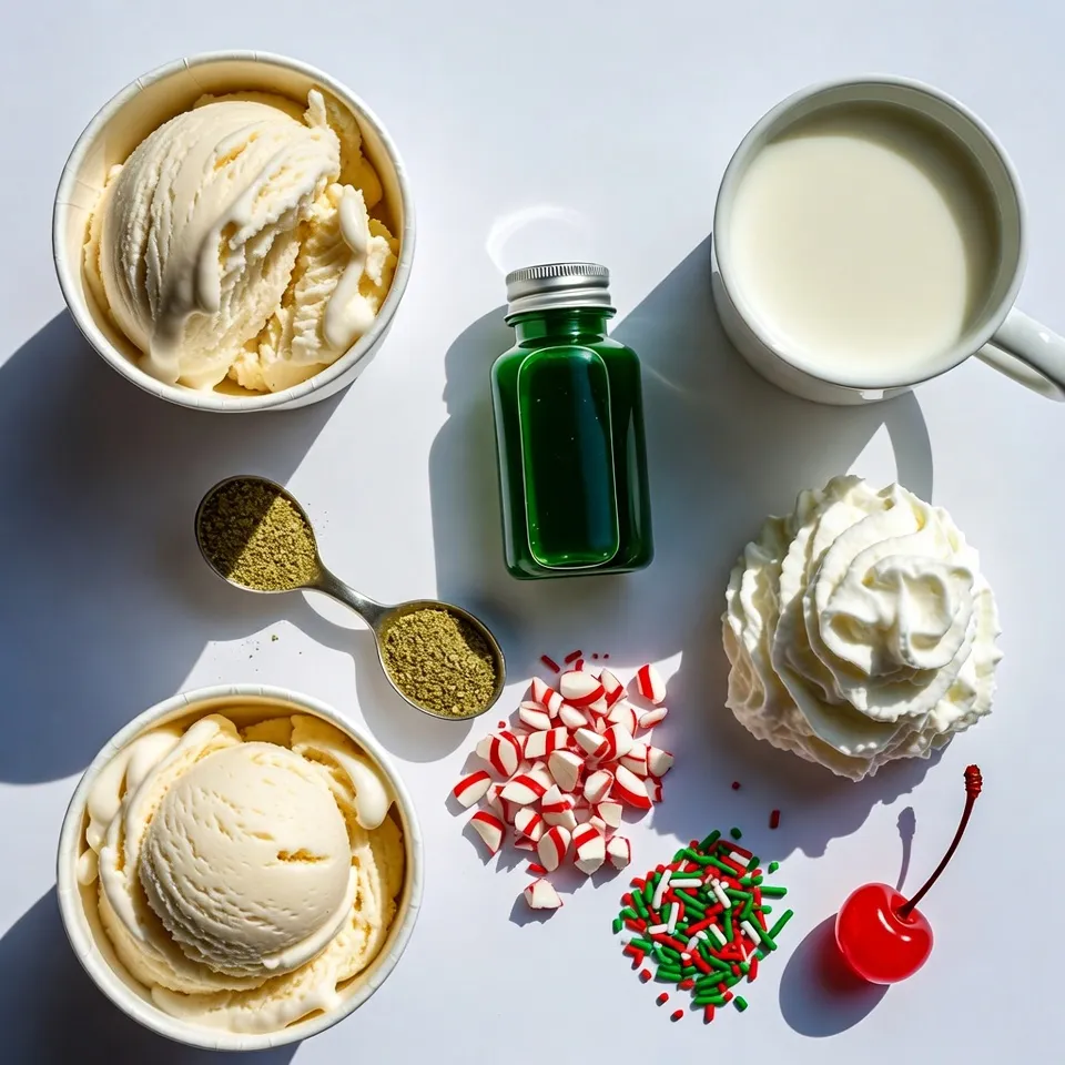 1. In a blender, combine 2 cups of vanilla ice cream, 1 cup of milk, 1 teaspoon of peppermint extract, and 1/2 cup of green food coloring.