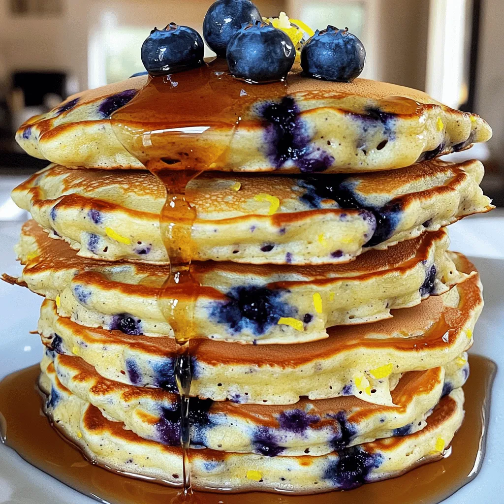 Serve these pancakes warm with a drizzle of maple syrup. Add extra blueberries on top for a pop of color. A dusting of powdered sugar is nice too. You can also pair them with yogurt or whipped cream. Fresh lemon zest enhances the bright lemon flavor. Enjoy your delicious stack!