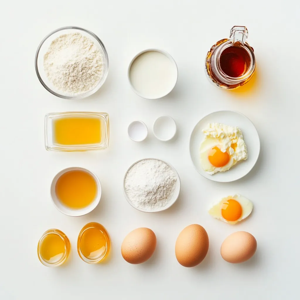 To make these fluffy Japanese soufflé pancakes, gather your ingredients first. Use all-purpose flour for the best texture. Granulated sugar adds sweetness, while baking powder helps them rise. Milk brings moisture and a creamy taste.