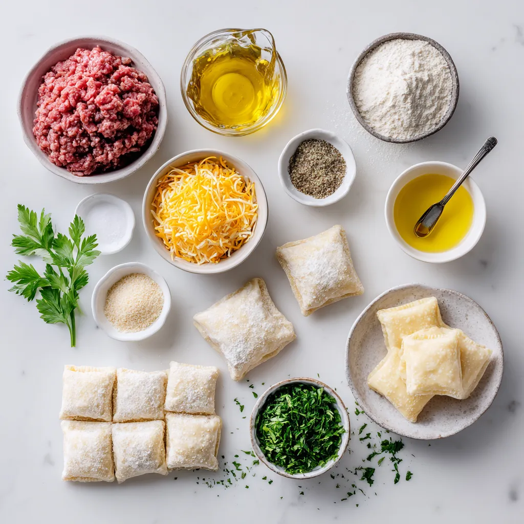 The stars of this dish are ground beef and two cheeses. The ground beef gives a rich flavor. Cheddar adds creaminess, while Parmesan brings a sharp bite. Seasonings like garlic and onion powders boost the taste.