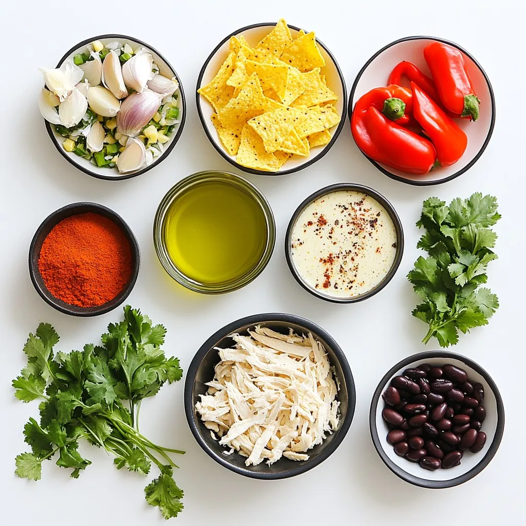 Spices bring the dish to life. Cumin, chili powder, and smoked paprika add depth and warmth. Chicken broth is the heart of the soup, blending all the flavors together. Use shredded chicken for a nice texture. Black beans and corn make it hearty and filling.