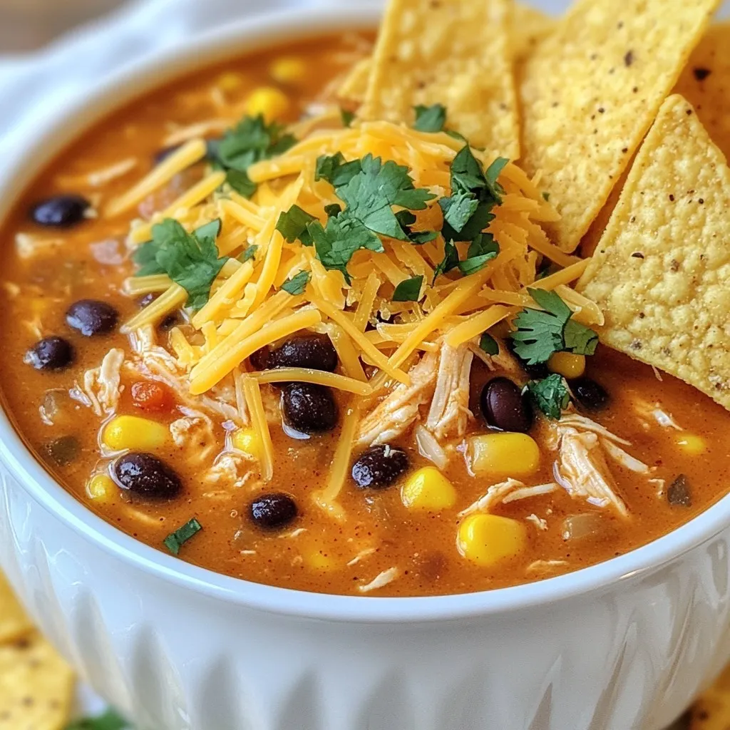 Don’t forget the heavy cream for that creamy finish! It balances the spice and makes the soup rich. Season with salt and pepper to taste. Finally, add fresh cilantro, shredded cheese, and tortilla chips for that perfect garnish. Each ingredient plays a role in making this dish a family favorite.