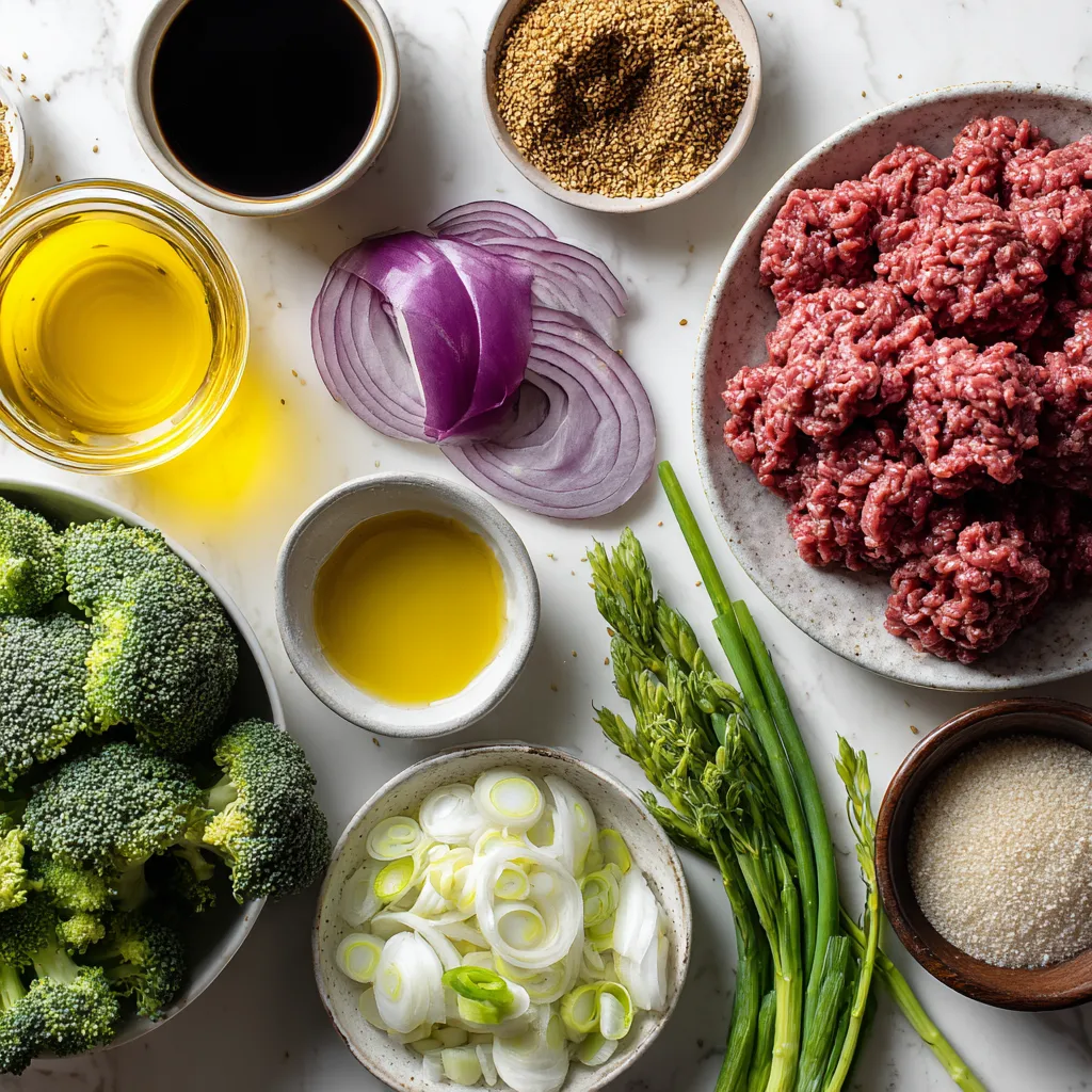These main ingredients create a flavorful base that packs a punch. The ground beef gives protein, while broccoli adds crunch and nutrients. You will love the mix of garlic and ginger. They add a fresh and zesty flavor.