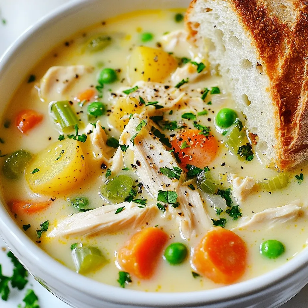 Seasoning is key to a tasty chicken pot pie soup. Start with salt and pepper when cooking the chicken to build flavor. Use fresh herbs like thyme and rosemary for a fragrant touch. After adding the broth and veggies, taste the soup before serving. This way, you can adjust the seasoning as needed. If you want a bit of heat, add a pinch of red pepper flakes. You can also finish your soup with fresh parsley for a burst of flavor.