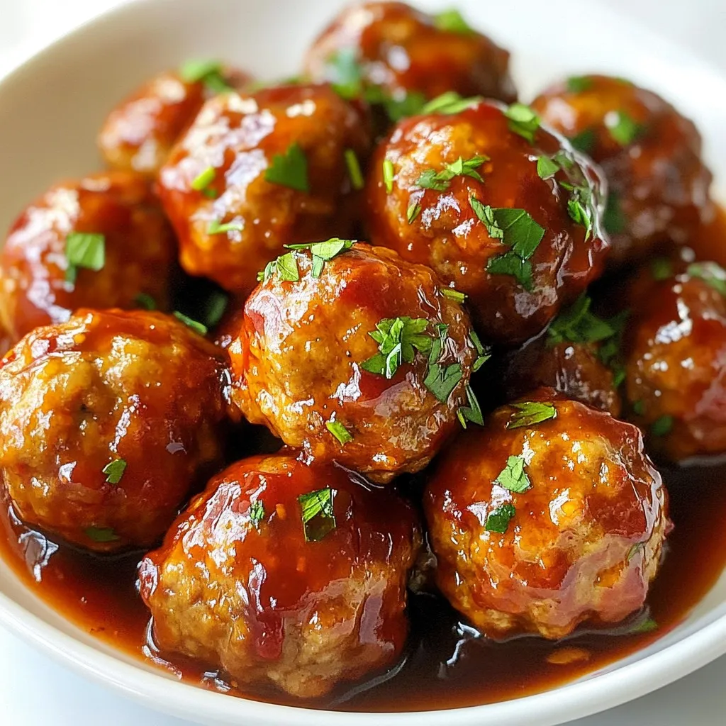 For a beautiful presentation, use a festive serving dish. After coating the meatballs in glaze, place them neatly. Drizzle some extra glaze on top for shine. Sprinkle chopped parsley for color. This small touch makes a big difference on your table!