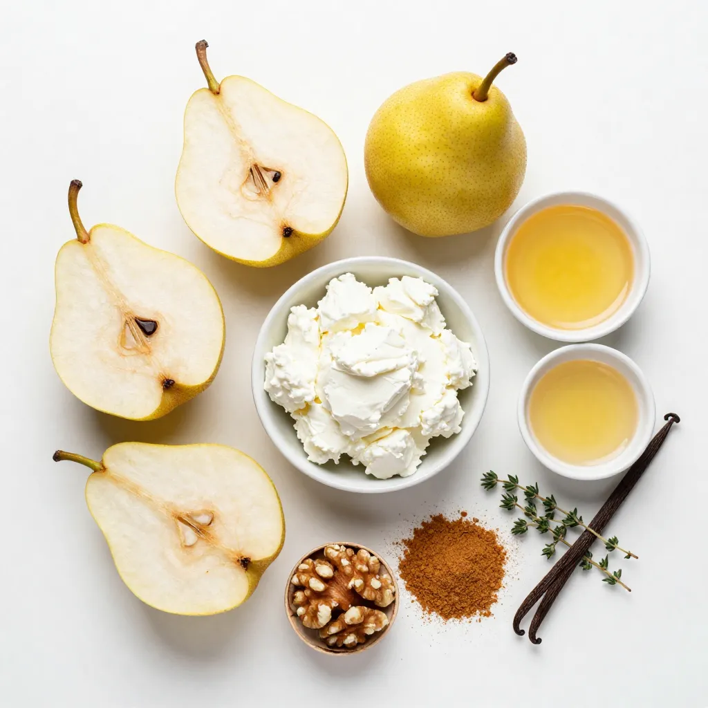 To make Honey Goat Cheese Baked Pears, gather these ingredients: