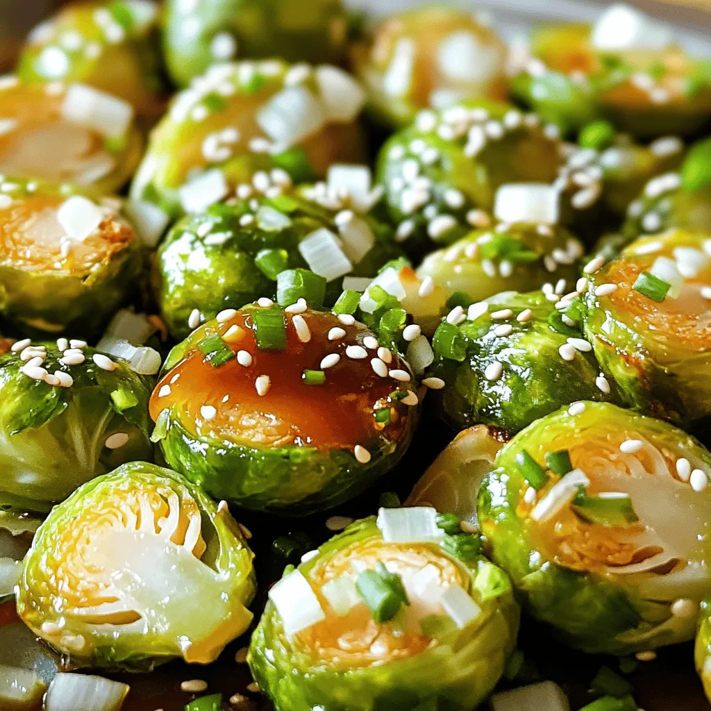 To make Honey Sriracha Brussels Sprouts, gather these key ingredients: - 1 lb Brussels sprouts, trimmed and halved - 2 tablespoons olive oil - Salt and pepper to taste - 3 tablespoons honey - 2 tablespoons Sriracha sauce - 1 tablespoon soy sauce - 1 teaspoon garlic powder These ingredients create a sweet and spicy mix that is hard to resist. The Brussels sprouts become crispy and tender, while the sauce adds depth and flavor. You can enhance the dish with some optional ingredients: - 1 tablespoon sesame seeds (optional) - 2 green onions, chopped (for garnish) Adding sesame seeds gives a nice crunch. Chopped green onions add fresh flavor and a burst of color. To prepare this recipe, you’ll need a few basic tools: - A large mixing bowl - A baking sheet - A whisk or fork - A small bowl for mixing the sauce These tools make the process easy and efficient, helping you whip up these tasty Brussels sprouts in no time. Start by trimming the Brussels sprouts. Cut off the tough ends and slice them in half. This helps them cook evenly. Place the halved sprouts in a large bowl. Add 2 tablespoons of olive oil, salt, and pepper. Toss them well until every piece is coated. This step adds flavor and helps them crisp up. Next, preheat your oven to 425°F (220°C). Spread the Brussels sprouts in a single layer on a baking sheet. Make sure they are not crowded; this helps them roast better. Roast them for 20-25 minutes. Check for crispy outer leaves and tender centers. This roasting brings out their natural sweetness. While the Brussels sprouts roast, let's make the sauce. In a small bowl, whisk together 3 tablespoons of honey, 2 tablespoons of Sriracha sauce, 1 tablespoon of soy sauce, and 1 teaspoon of garlic powder. Mix well until it’s smooth. This sauce brings a sweet and spicy kick to the sprouts. Once the sprouts are done roasting, take them out of the oven. Pour the honey Sriracha mixture over them. Toss gently to coat every sprout. Return them to the oven for an extra 5-7 minutes. This step allows the sauce to caramelize. Your Brussels sprouts will now have a lovely glaze that enhances their flavor. To get great Brussels sprouts, focus on quality. Choose fresh, firm sprouts. Trim them well and cut them in half. This helps them cook evenly. Use enough olive oil to coat them. Don't crowd the pan; give them space to crisp. Roast them at 425°F (220°C) for the best texture. Keep an eye on them. The outer leaves should be crispy and the insides tender. The heat comes from Sriracha. You can control this by adding less Sriracha. Start with one tablespoon instead of two. Taste the sauce, then add more if you want it spicier. You can also balance heat with more honey. This makes the dish sweet and spicy. If you want a milder flavor, try using chili paste instead of Sriracha. Serve these Brussels sprouts hot from the oven. They pair well with rice or quinoa. Add them to a salad for a crunchy touch. You can also serve them as a side with grilled chicken or fish. For a fun twist, try them as a topping on tacos. Don't forget to sprinkle sesame seeds and green onions for extra flavor! {{image_2}} You can add nuts to make your dish crunchier. Try using walnuts or pecans. Chop them up and mix them in just before roasting. The nuts will toast and add a nice flavor. They also make each bite more interesting. If you need a vegan option, you can swap honey with maple syrup. It gives a similar sweetness. For the sauce, use a vegan Sriracha. Check the label to ensure it’s free of animal products. This way, you keep the taste while being vegan-friendly. Want to switch things up? Consider adding garlic or ginger for more flavor. You can also mix in some red pepper flakes for heat. For a fresh twist, toss in some lemon zest. Each change can bring a new taste to your Brussels sprouts. To keep your leftover Honey Sriracha Brussels sprouts fresh, place them in an airtight container. Make sure the sprouts have cooled to room temperature before sealing. They can last in the fridge for up to 3 days. If you want to maintain their crispy texture, store them without the sauce. When you’re ready to enjoy the leftovers, preheat your oven to 350°F (175°C). Spread the Brussels sprouts on a baking sheet. Heat them for about 10-15 minutes, or until they are warm. This method helps keep them crispy. You can also microwave them, but they may become soft. You can freeze Honey Sriracha Brussels sprouts, but they will lose some crispness. To freeze, let them cool completely, then place them in a freezer-safe bag. Remove as much air as possible before sealing. They can stay frozen for up to 3 months. When you're ready to eat, thaw them in the fridge before reheating. Yes, you can use frozen Brussels sprouts. Just make sure to thaw them first. Frozen sprouts may not get as crispy as fresh ones. If you use frozen, roast them a bit longer. Check for tenderness and adjust cooking time as needed. To add more heat, increase the Sriracha in the sauce. You can also add red pepper flakes. If you love heat, try fresh chilies or a hot sauce blend. Adjust the spice to your taste, but start small. You can always add more if needed. If you don't have Sriracha, try another hot sauce. You might use chili garlic sauce or sambal oelek. Each will add heat and flavor. For a milder option, use sweet chili sauce. It adds sweetness but less spice. Absolutely! Honey Sriracha Brussels sprouts are great for meal prep. You can roast them ahead of time and store them in the fridge. They keep well for up to four days. Reheat them in the oven for best results. They’ll still taste amazing! You learned how to make Honey Sriracha Brussels Sprouts that burst with flavor. We covered key ingredients and tools, plus step-by-step instructions to roast them perfectly. Tips helped ensure great taste, and variations showed how to mix it up. I shared storage tips so you can save extras and enjoy them later. With these ideas, you can impress friends and family at your next