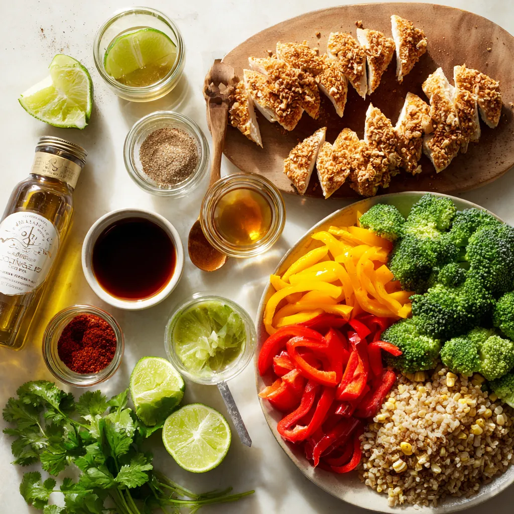 For the main ingredients, chicken breast is the star. It soaks up all the flavors, making each bite juicy. Hot honey adds a sweet and spicy touch. Soy sauce gives a savory kick, while olive oil helps cook the chicken perfectly. Garlic powder and smoked paprika bring depth to the dish.