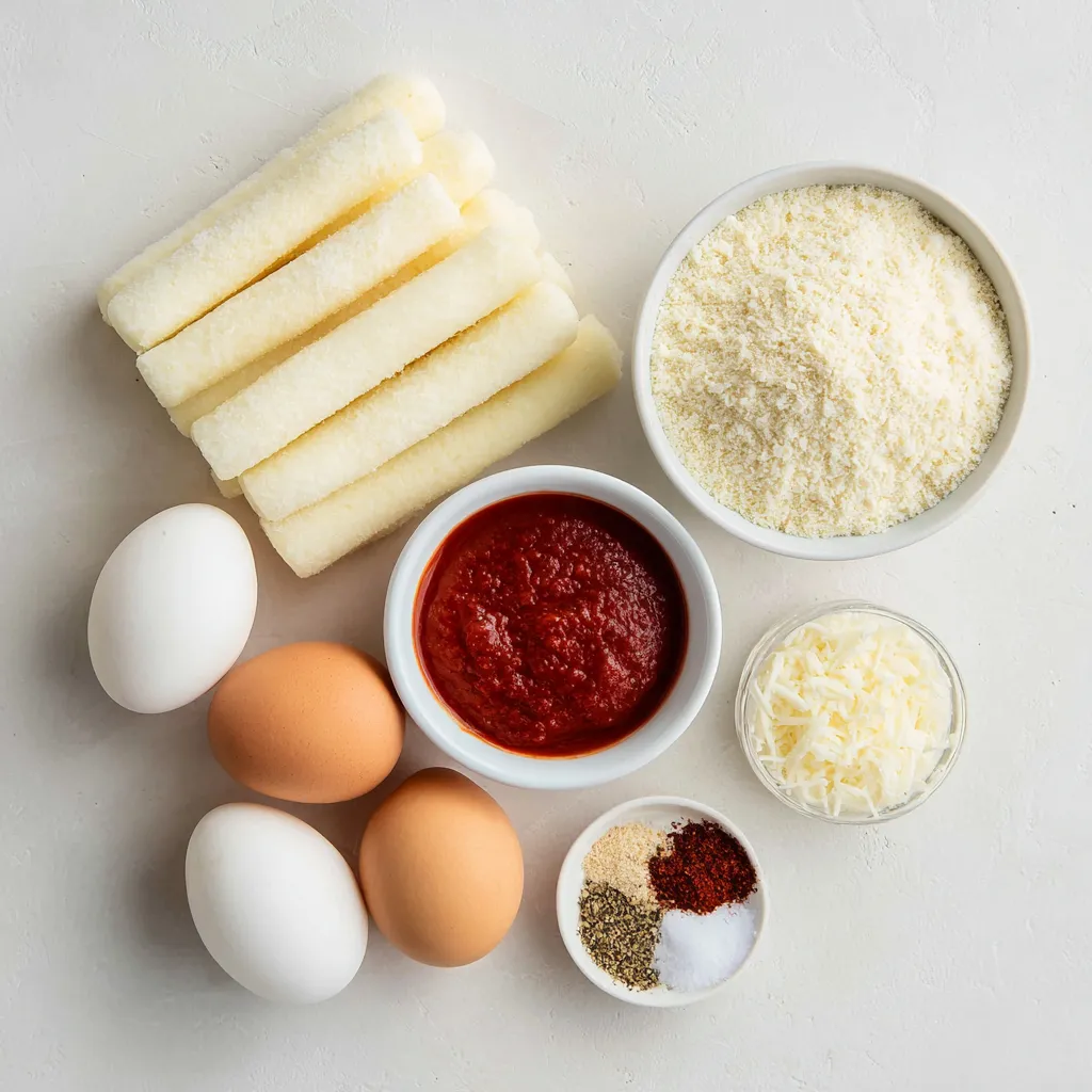 To start, gather all your ingredients. You will need 12 oz of mozzarella cheese cut into sticks. For the coating, measure out 1 cup of almond flour and 1/2 cup of grated Parmesan cheese. You will also need 2 large eggs, 1 teaspoon of garlic powder, and 1 teaspoon of Italian seasoning. Don’t forget salt and pepper to taste.