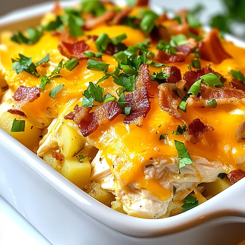 You can customize the Loaded Potato Ranch Chicken Casserole easily. First, try different cheeses. Instead of cheddar, use mozzarella or pepper jack for a twist. Each cheese brings its own flavor and texture.
