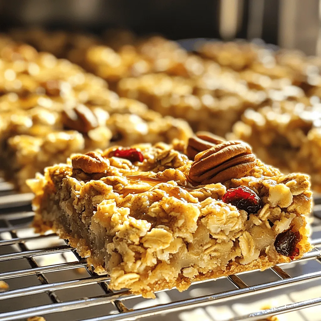 To get the best texture in your Maple Pecan Baked Oatmeal Bars, use rolled oats. They give a chewy feel that quick oats can’t match. Ground flaxseed adds a nice touch, making the bars hold together well. Press the mixture firmly into the pan before baking. This step helps the bars stay together after they cool.