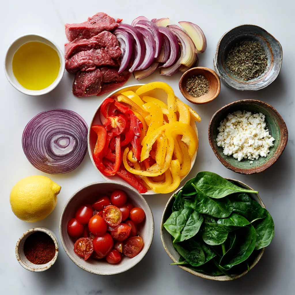 For a great Mediterranean Beef Stir Fry, you want high-quality beef sirloin. This cut is tender and cooks quickly, making it perfect for stir-frying. Slice it thin to help it cook evenly and soak up flavors. Next, olive oil adds richness and helps with cooking.