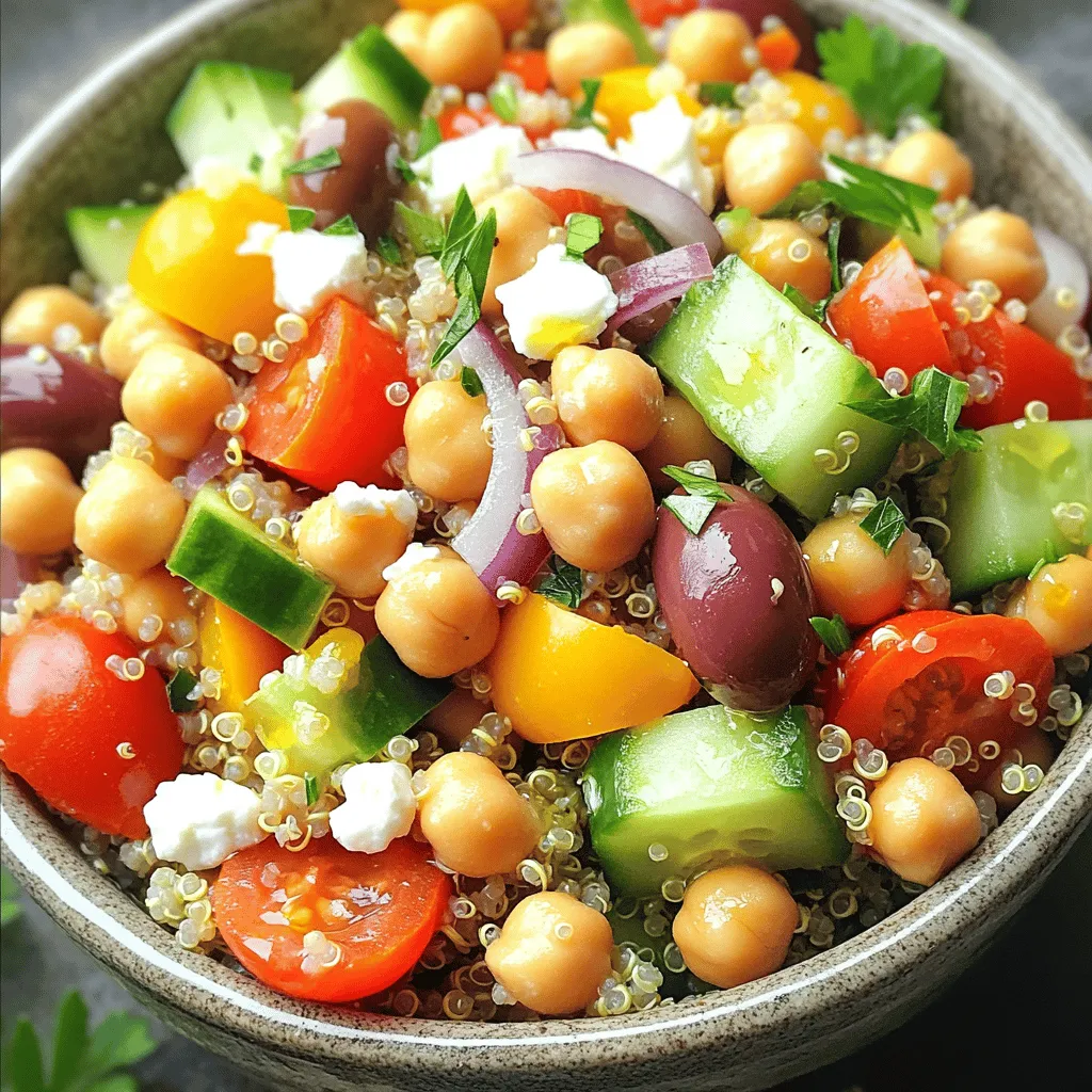 You can change some ingredients to fit your taste. For a grain twist, try farro or barley instead of quinoa. If you want a different bean, use black beans or kidney beans. You can also switch cherry tomatoes for sun-dried tomatoes. For crunch, add radishes or carrots instead of cucumbers.