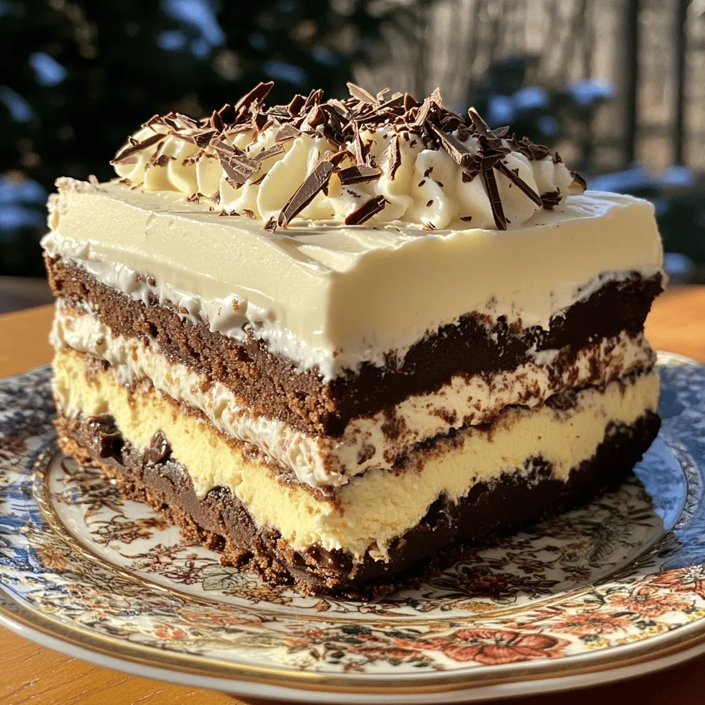 - 2 cups heavy whipping cream - 1 cup powdered sugar - 1 teaspoon vanilla extract - 16 ounces chocolate sandwich cookies (like Oreos), crushed - 1 cup chocolate sandwich cookies, whole (for layering) - 1/2 cup cream cheese, softened - 1 cup milk (for dipping cookies) - Optional: shaved chocolate or cookie crumbs for garnish To create the best no bake cookies and cream icebox cake, you need some key ingredients. First, heavy whipping cream gives the cake its fluffy texture. Powdered sugar adds sweet flavor, while vanilla extract enhances that creaminess. You will also need chocolate sandwich cookies. Use them crushed and whole for the layers. The cream cheese adds richness to the filling. Milk helps soften the cookies when you dip them. For an extra touch, you can use shaved chocolate or cookie crumbs as garnish. Each ingredient plays an important role. The cream makes it light, while the cookies add crunch. This combination makes every bite a delight. Start by pouring 2 cups of heavy whipping cream into a large bowl. Use a hand mixer to whip the cream until you see soft peaks. This means the cream holds its shape but is still soft. Next, add 1 cup of powdered sugar and 1 teaspoon of vanilla extract. Keep whipping until you get stiff peaks. This is when your cream stands tall and firm. Set this bowl aside. In another bowl, take 1/2 cup of softened cream cheese. Beat it until it is smooth. Now, gently fold in half of your whipped cream mixture. Use a spatula and be careful not to deflate it. This adds a nice creamy texture to your cake. Once mixed, add the rest of the whipped cream. Fold it in gently again. You want to keep it light and fluffy. Take 1 cup of milk and pour it into a shallow dish. Dip each whole chocolate sandwich cookie into the milk for about 1 second. Don’t soak them; just give them a quick dip. Place these dipped cookies in a single layer at the bottom of a 9x13 inch baking dish. Spread a layer of your cream mixture over the cookies. Smooth it out evenly with a spatula. Next, sprinkle a layer of crushed chocolate sandwich cookies over the cream. Repeat this process: dip more cookies, layer them, and add cream. Keep going until all your ingredients are used up. Finish with a smooth layer of the cream mixture on top. Cover the dish with plastic wrap. Refrigerate for at least 4 hours, or overnight if you can wait. This helps the cookies soften and the flavors blend. To make great whipped cream, start with cold tools. Use a chilled bowl and beaters. Whip the heavy cream until soft peaks form. This means it should hold some shape but still be soft. Then, slowly add the powdered sugar and vanilla extract. Keep whipping until you see stiff peaks. This will give your cake a light and fluffy feel. When layering cookies, dip them quickly in milk. Just one second is enough. Too much soaking can make them soggy. Place them in a single layer in the dish. Spread the cream mixture evenly on top of the cookies. Sprinkle crushed cookies on this layer. Keep repeating the layers until you use all the cream and cookies. You can add fun flavors to your icebox cake. Try mixing in some peanut butter or mint extract. You can also fold in crushed candy bars or nuts into the cream. For a fruity twist, add fresh berries. These small changes can make your cake unique and exciting. {{image_2}} You can switch up the cookies for a fun twist. Use vanilla sandwich cookies if you want a lighter flavor. Try peanut butter cookies for a rich and nutty taste. You can even use gluten-free cookies for a treat that fits special diets. Just remember to keep the cookie texture in mind. Softer cookies may not hold up well in layers. Want to mix in some flair? Add a bit of mint extract for a cool touch. You can also sprinkle in crushed candies or nuts for crunch. For a fruity twist, try adding strawberry or raspberry puree between layers. This adds a fresh taste that pairs well with the creaminess. Experimenting with flavors can make this cake truly unique. If you need dairy-free options, use coconut cream instead of heavy cream. Look for dairy-free cream cheese for a smooth texture. For a low-sugar version, swap powdered sugar with a sugar substitute. You can also find cookies made with less sugar or natural sweeteners. These changes keep the cake delicious while fitting your dietary needs. To keep your Cookies & Cream Icebox Cake fresh, cover it tightly with plastic wrap. This helps prevent air from drying it out. If you have a large piece, you can also use a cake dome. Store it in the fridge for best results. The cool temperature keeps the cake firm and tasty. If you want to freeze your cake, slice it first. Wrap each slice in plastic wrap. Then, place the slices in a freezer-safe bag or container. This helps keep the cake fresh and prevents freezer burn. When you are ready to eat, let it thaw in the fridge overnight. In the fridge, your icebox cake lasts about 3 to 5 days. If you freeze it, it can last up to 3 months. However, the texture may change after thawing. The flavors will still be good, but the cream may not be as fluffy. Enjoy your icebox cake while it's fresh for the best taste! Yes, you can make this cake ahead of time. This icebox cake tastes even better after it sits. I suggest making it a day before you plan to serve. This allows the flavors to mix and the cookies to soften perfectly. Just cover it well in the fridge. If you need a substitute for cream cheese, use mascarpone cheese. It has a smooth texture and a mild taste. Another option is Greek yogurt. It adds a tangy flavor and works well in this recipe. Just be sure to use plain yogurt to keep the taste right. The cake needs to chill for at least 4 hours. For best results, refrigerate it overnight. This helps the cookies soften and blend with the cream layers. A longer chill time gives you a creamier and more delicious cake. This blog post covered all you need for a delicious icebox cake. We discussed key ingredients like heavy cream and c