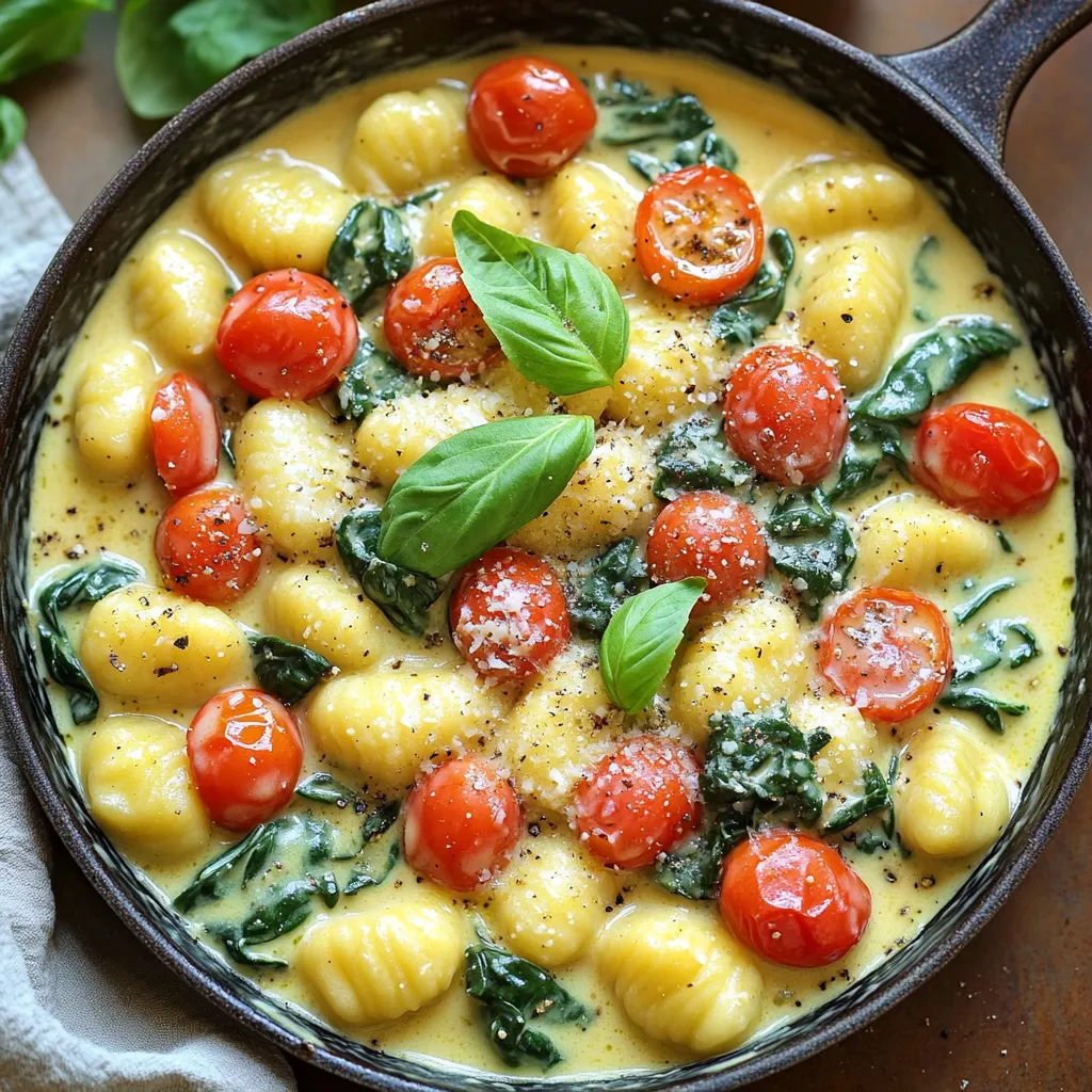 Each ingredient plays a key role in flavor and texture. The gnocchi provides a soft, pillowy base. The garlic gives a warm, savory taste. Cherry tomatoes add a sweet burst, while spinach brings a fresh green note. Heavy cream and Parmesan create a rich, creamy sauce that ties everything together.