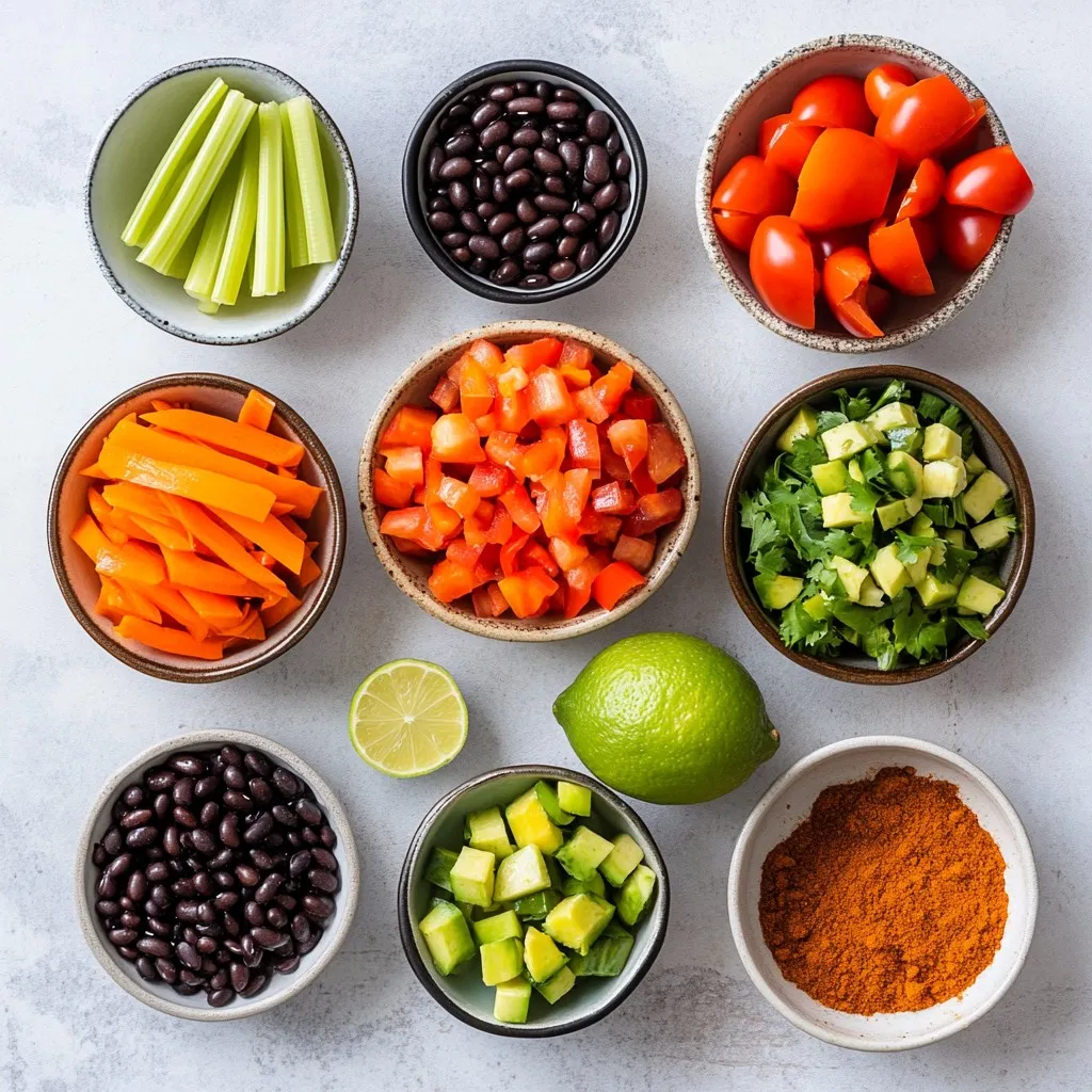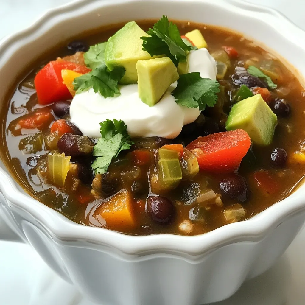 - 2 cups dried black beans (or 4 cans canned black beans, rinsed and drained) - 1 medium onion, chopped - 3 cloves garlic, minced - 1 bell pepper (any color), diced - 2 medium carrots, diced - 2 celery stalks, diced - 4 cups vegetable broth - 1 can (14 oz) diced tomatoes with green chilies - 2 teaspoons ground cumin - 1 teaspoon smoked paprika - 1 teaspoon chili powder - Salt and pepper to taste - 2 tablespoons olive oil - Juice of 1 lime - Fresh cilantro, for garnish - Avocado, diced (for serving) - Sour cream or Greek yogurt (optional, for serving) When you buy fresh ingredients, look for bright colors. For the bell pepper, choose one that feels firm and heavy. The skin should be smooth with no blemishes. Choose onions that are dry and firm. Avoid any with soft spots. Garlic should be plump and firm, with no green sprouts. For carrots and celery, look for crisp and bright stalks. To make the soup even better, try adding a few garnishes. Fresh cilantro adds a nice touch. Diced avocado brings creaminess and flavor. A dollop of sour cream or Greek yogurt can add richness. If you like spice, add a sprinkle of chili flakes. These options let you customize each bowl to your taste. {{ingredient_image_1}} To make your One-Pot Black Bean Soup, begin with the right prep. If you chose dried black beans, soak them overnight. This helps them cook well. If you go for canned beans, just rinse them under cold water. Set them aside for later. Next, chop your vegetables. You need one medium onion, three cloves of garlic, one bell pepper, two carrots, and two celery stalks. Dice them into small pieces. This helps them cook evenly and blend nicely in your soup. Now, let’s sauté the veggies for a tasty base. Heat two tablespoons of olive oil in a large pot over medium heat. Once hot, add the chopped onion and garlic. Stir them for about one minute until fragrant. Then, toss in the diced bell pepper, carrots, and celery. Sauté these for about five to seven minutes. You want them soft but not mushy. This step builds a great flavor foundation for your soup. After the veggies are ready, add your spices. Stir in two teaspoons of ground cumin, one teaspoon of smoked paprika, one teaspoon of chili powder, and some salt and pepper. Cook this for another minute. This will enhance the aroma and taste of your soup. Next, it’s time to add the beans. If you used dried beans, drain them and add them now with four cups of vegetable broth. Bring this mixture to a boil. Then, reduce the heat to low, cover, and let it simmer for about 1.5 to 2 hours. Stir occasionally to keep things mixed well. If you used canned beans, add them with a 14 oz can of diced tomatoes. You will only need 20 to 30 minutes of simmering to heat everything through. If the soup gets too thick, feel free to add a bit more broth or water. This simple method makes a soup full of rich flavors and textures. Enjoy the process! To make your black bean soup shine, use herbs and spices wisely. I like to add fresh cilantro at the end for a bright taste. You can also use bay leaves while cooking. They add depth to the flavor. Ground cumin and smoked paprika bring warmth and richness. If you want a kick, add more chili powder. Don’t be shy to taste as you go. Adjust the amounts to match your taste. Not everyone enjoys the same spice level. If you want it mild, skip extra chili powder. For more heat, use diced jalapeños or hot sauce. You can also add crushed red pepper flakes. Start with a small amount and increase it slowly. This way, you can control how spicy it gets. Remember, you can always add more, but you can't take it out. A large pot works best for this soup. It lets you sauté and simmer without spilling. An immersion blender is a handy tool for creamy soup. It blends part of the soup while keeping some beans whole. If you don’t have one, a regular blender works too. Just be careful when blending hot soup. Lastly, always have a good knife and a cutting board for fast prep. Pro Tips Soak Your Beans: If using dried black beans, soaking them overnight not only reduces cooking time but also helps in digestion. Add Depth of Flavor: Enhance the soup's flavor by adding a dash of soy sauce or tamari along with the spices. Fresh Herbs Boost: For an added freshness, consider incorporating chopped fresh herbs like parsley or oregano along with the cilantro. Adjust Consistency: If you prefer a thicker soup, reduce the amount of broth, or if it’s too thick, gradually add more broth until desired texture is achieved. {{image_2}} You can easily make this soup vegetarian. Just use vegetable broth, as the recipe shows. For a vegan version, skip the sour cream and Greek yogurt. Instead, add avocado for creaminess. Both options keep the soup tasty and hearty. If you want more protein, add meat like chicken or turkey. Cook the meat first, then add the veggies. Ground beef or sausage works well, too. For meatless protein, consider adding lentils or tofu. They blend nicely with the beans for texture. Black beans are the star here, but feel free to experiment. Kidney beans or pinto beans can replace black beans. You can also mix different beans for fun flavors. Using canned beans saves time, but dried beans give a richer taste. Just remember to soak them overnight! You can store leftover soup easily. First, let it cool down. Then, put it in an airtight container. This keeps the soup fresh for later. Leftover One-Pot Black Bean Soup stays good in the fridge for about three to four days. If you want to keep it longer, freezing is a great option. Reheating the soup is simple. You can use the stove or microwave. If using the stove, pour the soup into a pot. Heat it on low to medium heat. Stir often to avoid sticking. If you’re using a microwave, put the soup in a microwave-safe bowl. Heat it in short bursts, stirring in between. This ensures even heating. Always check that it's hot all the way through before serving. Enjoy your warm bowl of soup! Yes, you can use c