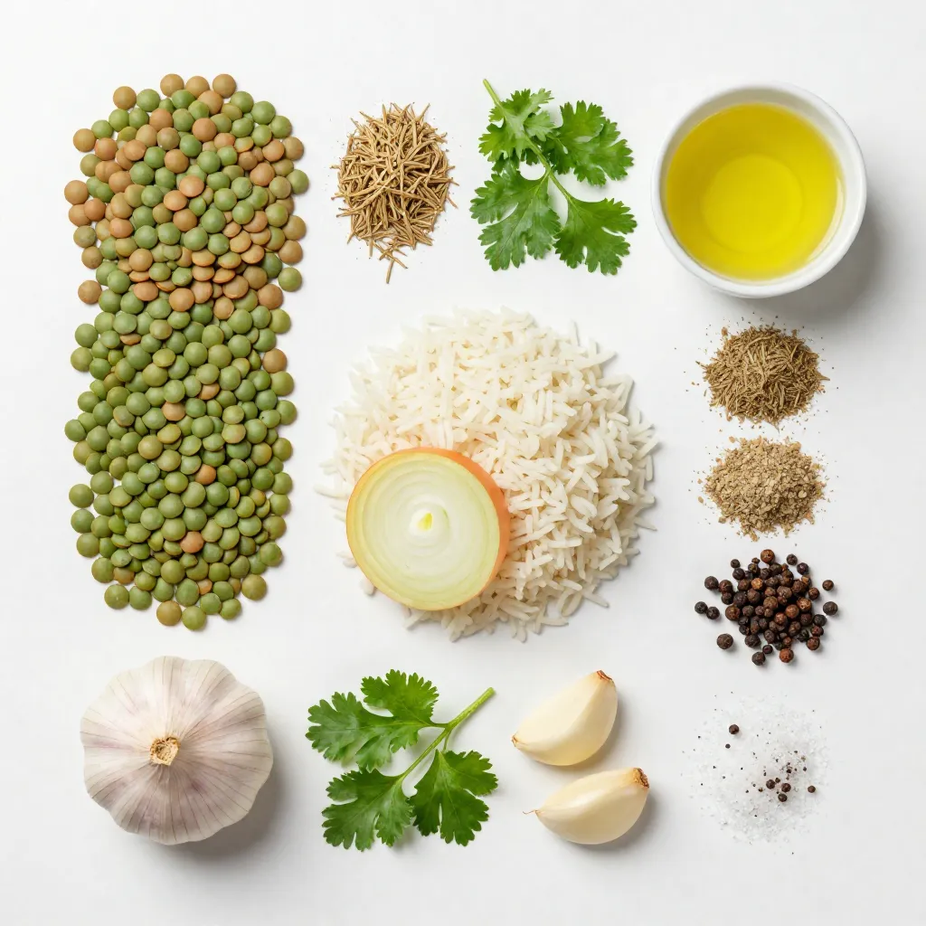 In making One-Pot Mujadara, the ingredients play a vital role. Start with lentils. They provide protein and fiber. You can choose green or brown lentils. They both work well. Next, we add basmati rice. This rice has a lovely aroma. It cooks perfectly with lentils.