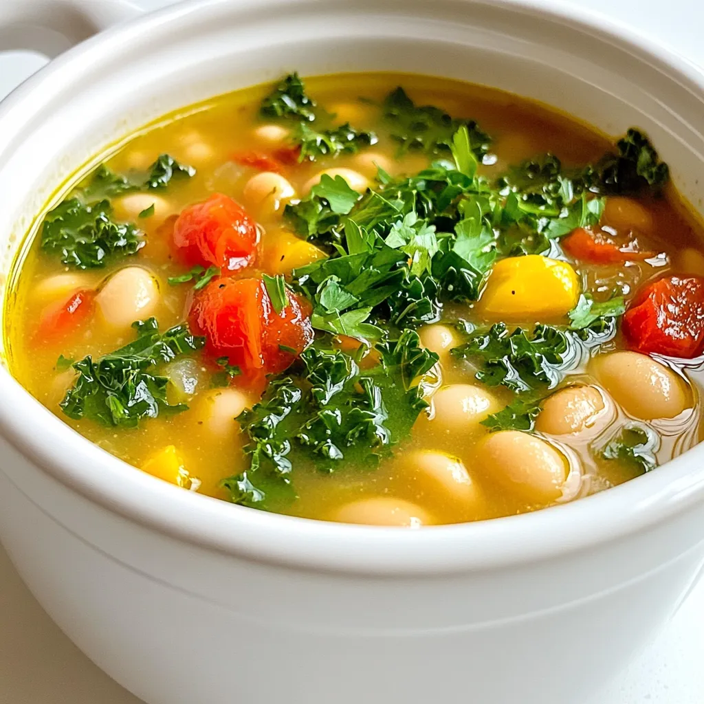 - 2 tablespoons olive oil - 1 medium onion, diced - 2 cloves garlic, minced - 2 medium carrots, diced - 2 celery stalks, diced - 1 teaspoon dried thyme - 1 teaspoon dried rosemary - 1 can (15 oz) cannellini beans, drained and rinsed - 4 cups vegetable broth - 1 can (14.5 oz) diced tomatoes, undrained - 2 cups kale leaves, chopped - Salt and pepper to taste - Optional: 1 tablespoon lemon juice for brightness - Fresh parsley for garnish Each ingredient plays a big role in this soup. The olive oil adds rich flavor and helps cook the veggies. The onion and garlic bring warmth and a homey scent. Carrots and celery add sweetness and crunch to the mix. Thyme and rosemary give the soup its classic Tuscan vibe. Cannellini beans are creamy and filling. The vegetable broth makes a tasty base. Diced tomatoes add tang and color. Kale adds nutrition and a lovely green touch. A hint of lemon juice lifts the flavors, while parsley gives a fresh finish. You can easily swap some ingredients. Use canola or avocado oil instead of olive oil. If you don’t have cannellini beans, try navy or great northern beans. For broth, chicken broth works too if you are not vegetarian. Spinach can replace kale for a softer green. If you want more spice, add some red pepper flakes. And, if you prefer fresh herbs, try basil or oregano instead of dried ones. Start by gathering all your ingredients. You will need olive oil, onion, garlic, carrots, celery, thyme, rosemary, cannellini beans, vegetable broth, diced tomatoes, kale, salt, pepper, and optional lemon juice. Dice the onion, carrots, and celery into small pieces. Mince the garlic cloves. Rinse the cannellini beans under cold water. Chop the kale into bite-sized pieces. 1. Heat two tablespoons of olive oil in a large pot over medium heat. 2. Once hot, add the diced onion. Sauté for about 3 to 4 minutes until it turns translucent. 3. Next, add the minced garlic, diced carrots, and celery. Cook for an additional 5 minutes. Stir occasionally. 4. Now, sprinkle in the dried thyme and rosemary. Stir them in to release their flavors. 5. Add the rinsed cannellini beans, vegetable broth, and undrained diced tomatoes. Bring this mixture to a gentle boil. 6. Lower the heat and let it simmer for about 20 minutes. This helps all the flavors blend well. 7. Stir in the chopped kale and cook for another 5 minutes. The kale should be tender. 8. Finally, add salt and pepper to taste. If you like, drizzle lemon juice on top for added brightness. Serve hot, garnished with fresh parsley. - When sautéing the onion, make sure it softens but does not brown. This keeps the flavor light. - Stir the soup occasionally to prevent sticking on the bottom of the pot. - Taste as you go. Adjust salt and pepper to your liking. - If you prefer more texture, add a few more vegetables like zucchini or bell peppers. - Always let the soup sit for a few minutes after cooking. This allows the flavors to deepen. These steps will help you create a tasty and warm Tuscan white bean soup that everyone will love! To boost the taste of your Tuscan white bean soup, use fresh herbs. Fresh thyme and rosemary add a great punch. For depth, add smoked paprika or a dash of cayenne pepper. These spices give warmth and excitement. A splash of lemon juice before serving brightens the soup. It adds a lovely zing that lifts the flavors. Don’t skip the salt and pepper; they balance everything out. One common mistake is overcooking the vegetables. You want them tender, not mushy. Stirring too much can also break the beans. They are delicate, so let them stay whole for texture. Another error is not seasoning enough. Taste as you go to find the right balance. Lastly, don’t skip the simmering time. This step helps the flavors meld together for a delicious result. Serve your soup with a slice of crusty bread. It makes a great pairing for dipping. A simple green salad can also complement the meal. For a heartier option, top the soup with grilled chicken or sausage. A sprinkle of fresh parsley adds color and freshness. Enjoy your soup warm for the best taste and comfort. {{image_2}} You can easily add protein to your Tuscan white bean soup. For a hearty touch, try Italian sausage. Just remove the sausage from its casing and crumble it into the pot. Cook it with the onions until brown. This adds a rich flavor to the soup. If you prefer chicken, use cooked rotisserie chicken. Just shred it and stir it in during the last five minutes of cooking. This gives you a filling meal without much extra work. This soup is already vegetarian, but you can also make it vegan. Just replace the vegetable broth with homemade broth or store-bought vegan broth. You can also add more veggies like bell peppers or zucchini for extra color and texture. If you want a creamier soup, blend a portion of the beans with broth. This will give the soup a nice, smooth texture. If you like heat, red pepper flakes are your friend. Add a pinch while cooking the onions for a gentle warmth. If you want more spice, add a teaspoon or two, depending on your taste. For a different kick, try adding diced jalapeños. They add a fresh heat that brightens the soup. This variation is perfect for those chilly nights when you crave something warm and spicy. To store leftovers, let the soup cool down first. Use a clean container with a lid. I recommend using glass containers for easy reheating. You can keep the soup in the fridge for up to four days. Make sure to label the container with the date. This helps track how long it has been stored. When you're ready to enjoy your soup again, reheating is simple. Pour the soup into a pot over medium heat. Stir it well to warm evenly. If the soup is too thick, add a splash of water or broth. Heat until it bubbles, then serve. You can also reheat it in the microwave. Use a microwave-safe bowl and cover it loosely. Heat in short bursts, stirring in between. If you want to freeze the soup, it's best to do it right after cooking. Let the sou