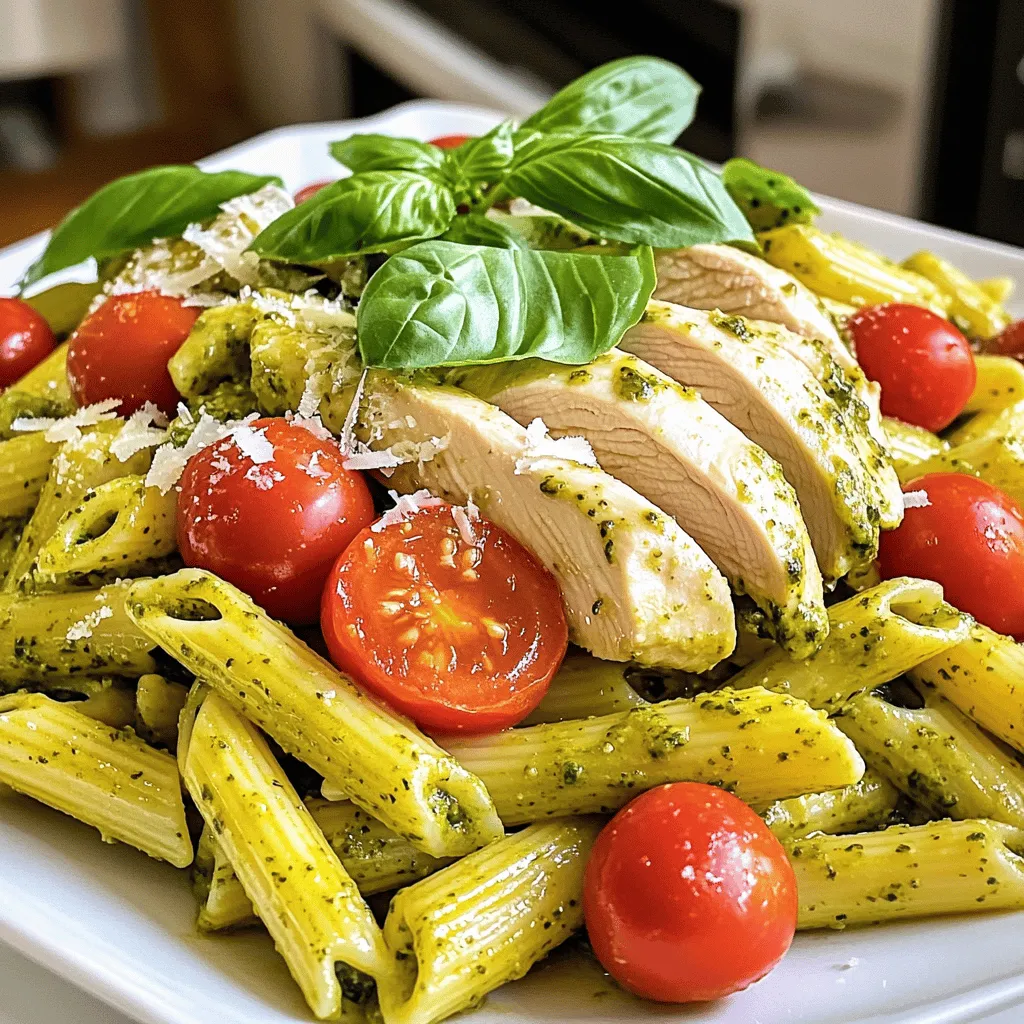 The main ingredients give this dish its heart. The chicken adds protein, while the penne pasta provides a great base. You can use homemade or store-bought basil pesto, which brings a fresh taste. The grated Parmesan cheese melts beautifully, adding creaminess. Cherry tomatoes add a burst of color and flavor.
