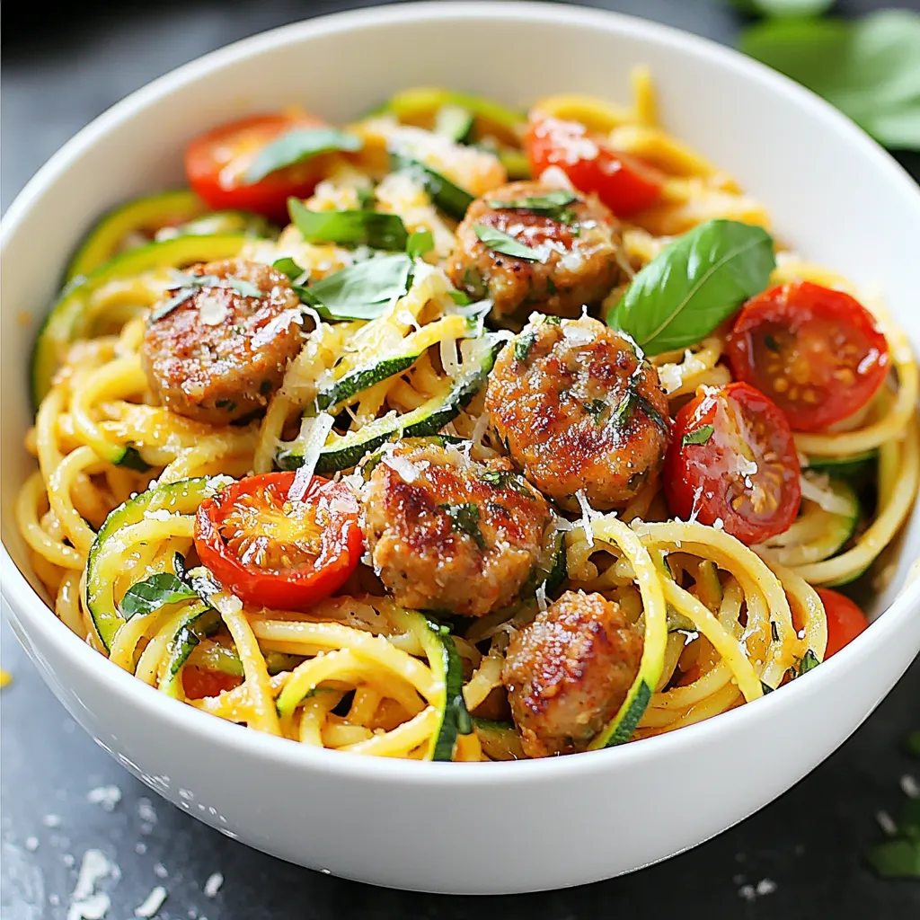 These ingredients come together to create a delicious, healthy meal. Whole wheat spaghetti adds fiber and nutrients. Chicken sausage brings protein and a savory taste. Zucchini noodles offer a light and fresh texture.