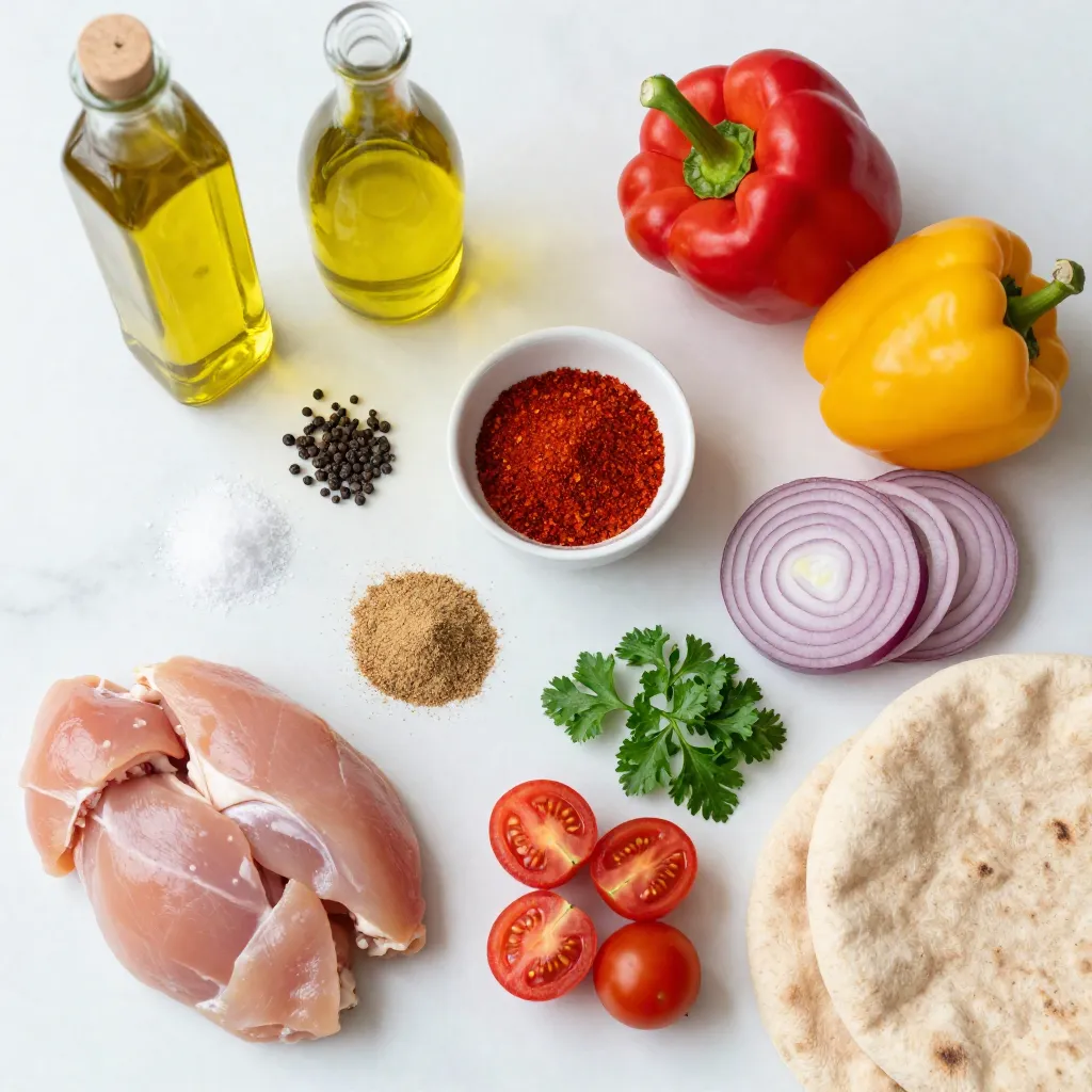 When I make these savory sheet pan chicken pitas, I start with fresh, high-quality ingredients. The chicken thighs are key. They stay juicy and tender, even when roasted. Olive oil adds richness and helps the spices stick.