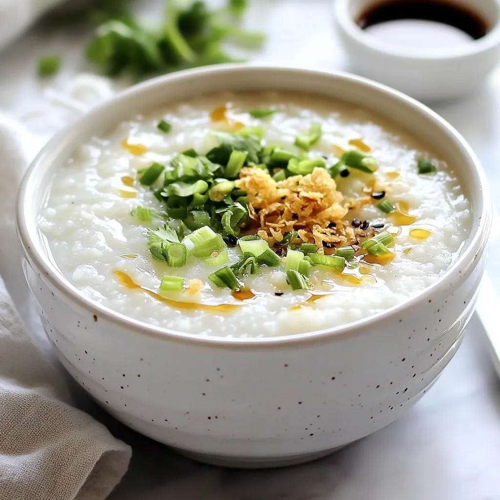 Use deep bowls for serving your congee. This keeps it warm and looks inviting. Drizzle sesame oil on top for an aromatic touch. You can also serve extra toppings on the side. This allows everyone to customize their bowl with flavors they enjoy.
