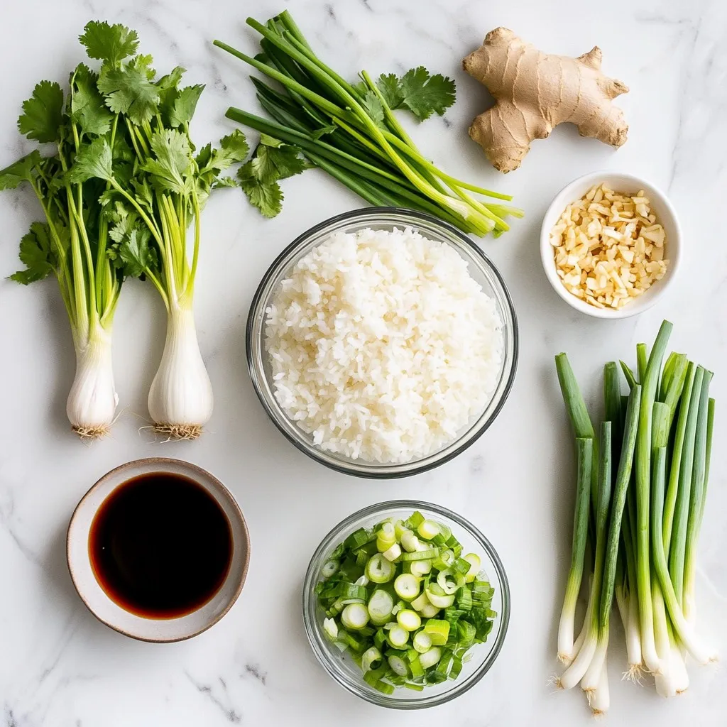 To make silk-smooth Chinese congee, start with the right ingredients. Choose jasmine rice for its fragrant flavor. The water or low-sodium chicken broth will add depth. Salt enhances the taste, while ginger gives warmth. Green onions add freshness. Sesame oil adds a nutty touch, and chicken makes it hearty. Soy sauce will bring umami, and white pepper adds a gentle kick. Finally, garnish with cilantro and crispy garlic for extra crunch.