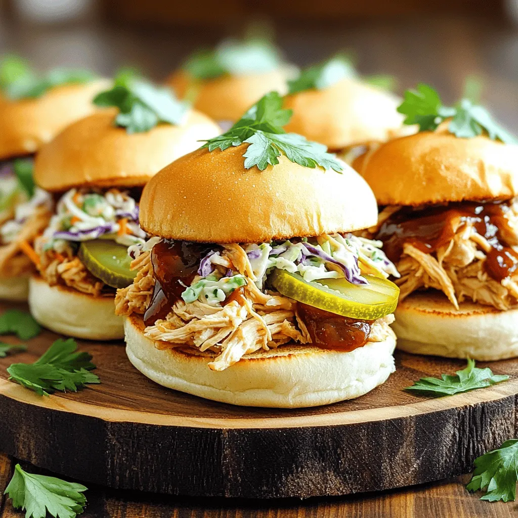 Finally, don’t forget the serving components. Slider buns are perfect for holding the BBQ chicken. You can add coleslaw for crunch and sliced pickles for zest. These toppings really elevate your sliders!