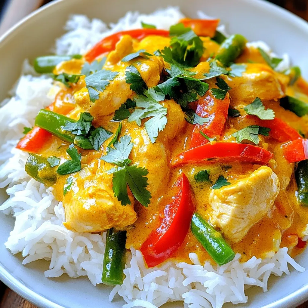 Cilantro adds a fresh touch. Jasmine rice serves as a perfect base for your curry. This combo helps balance the heat and makes your meal complete!