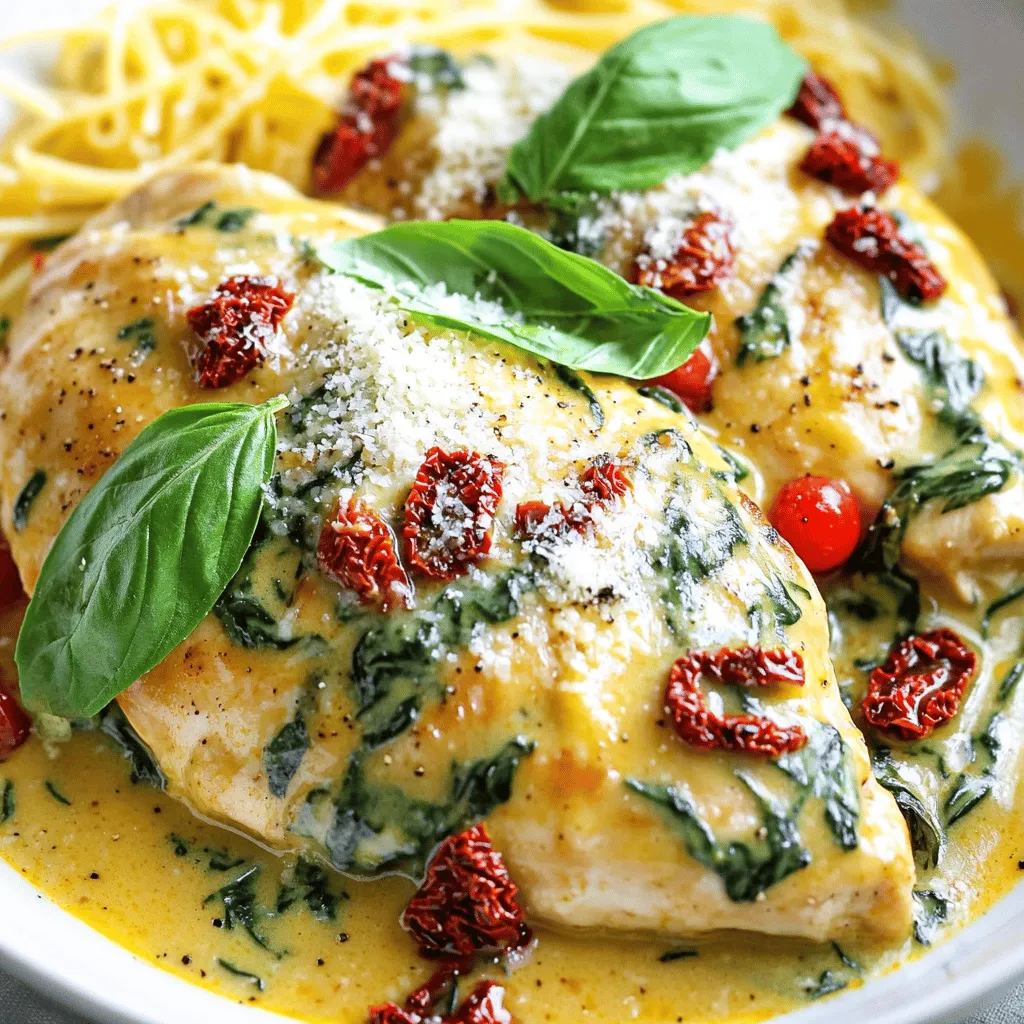 Try different sauces to change things up. A splash of balsamic vinegar gives a tangy twist. You could also use pesto for a fresh kick. These sauces bring new life to the classic Tuscan chicken.