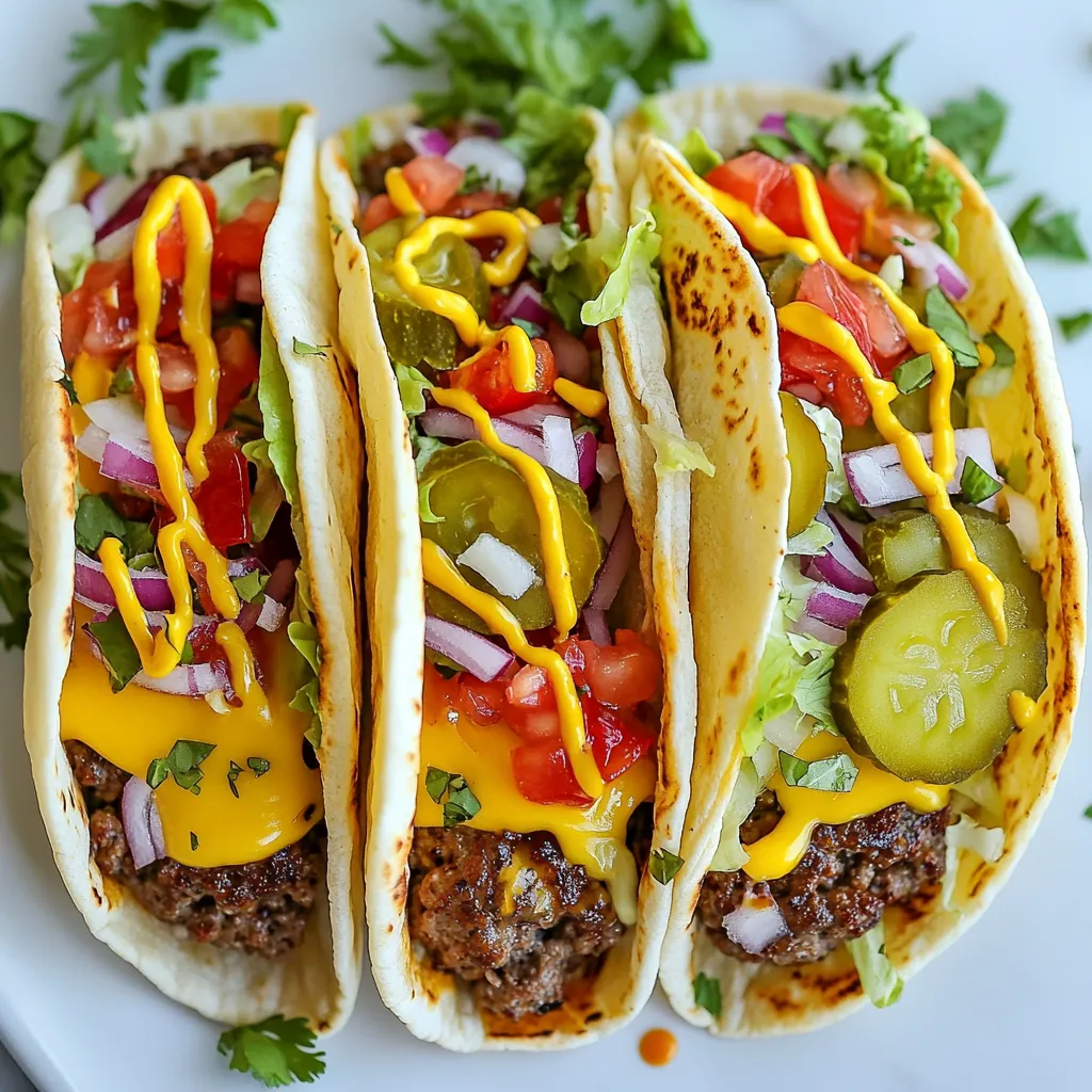 Smash Burger Tacos need solid ingredients to shine. First, choose ground beef with an 80/20 blend. This mix gives the beef juiciness and flavor. Using small flour tortillas makes them easy to hold and eat. For toppings, I love fresh shredded lettuce, diced tomatoes, and finely chopped red onions. A few pickles add a nice crunch. These ingredients pack a lot of taste into each taco.