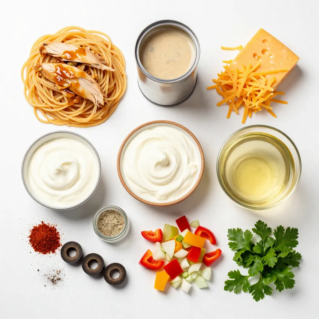 To make Southern Chicken Spaghetti Casserole, you need simple, easy-to-find ingredients. First, use two cups of cooked spaghetti. It gives the dish a nice base. Then, include two cups of cooked shredded chicken for protein. You can use leftover chicken or rotisserie chicken for ease.