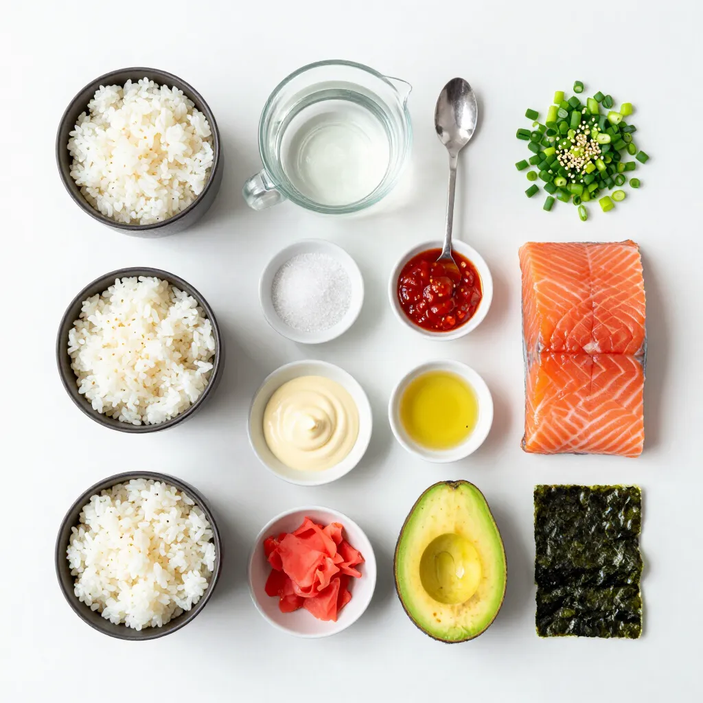 Gather these ingredients, and youβre ready to create a delicious Spicy Salmon Sushi Bake!