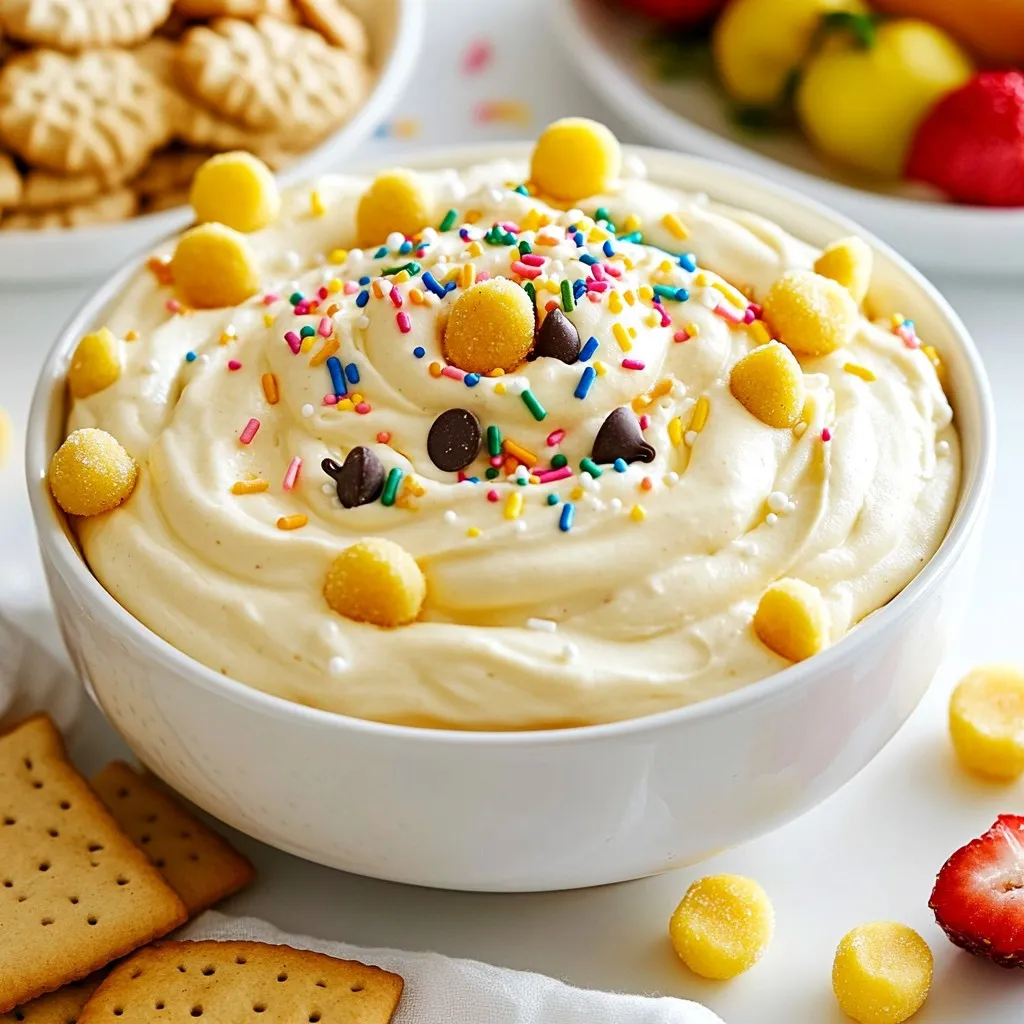 To boost the flavor, try adding more vanilla or almond extract. You can also use flavored extracts like coconut or lemon for a twist. For a visual pop, top the dip with extra mini chocolate chips or colorful sprinkles. When serving, arrange the dippers in a fun and colorful way. This makes your dessert not only tasty but also eye-catching!
