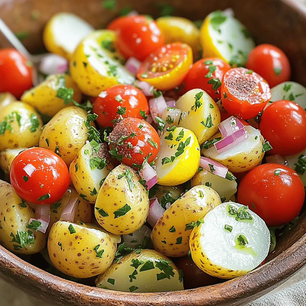 You can change a few ingredients in sumac potato salad. For a creamier texture, try adding Greek yogurt. This will give a nice tang. You can also swap cherry tomatoes for diced bell peppers. This adds color and crunch. If you want more protein, toss in chickpeas or diced feta cheese. Both options work well with the flavors in the salad.